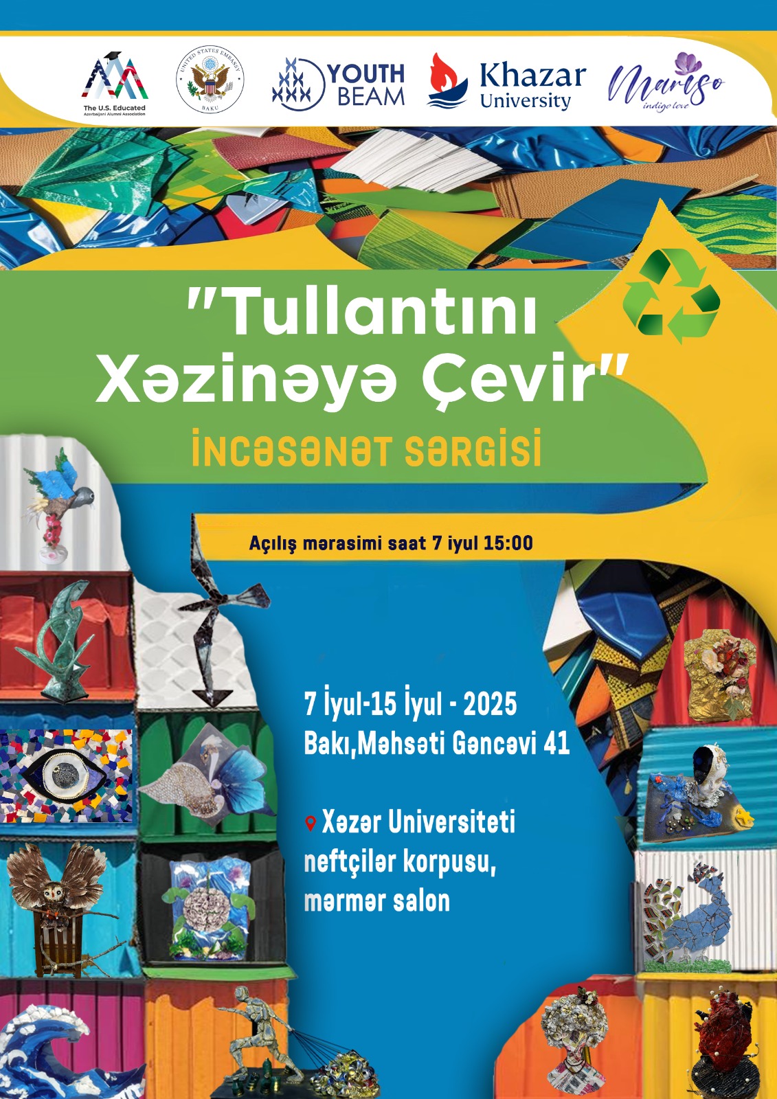 Amerika Səfirliyinin, Alumni Assosiyasiyası ,Youth Beam və Xəzər Universitetinin "Memarlıq və dizayn departamentinin təşkilatcılığı ilə7 iyul "Tullantıları Xəzinəyə Çevir"adlı sərginin acılışı keçiriləcəkdir