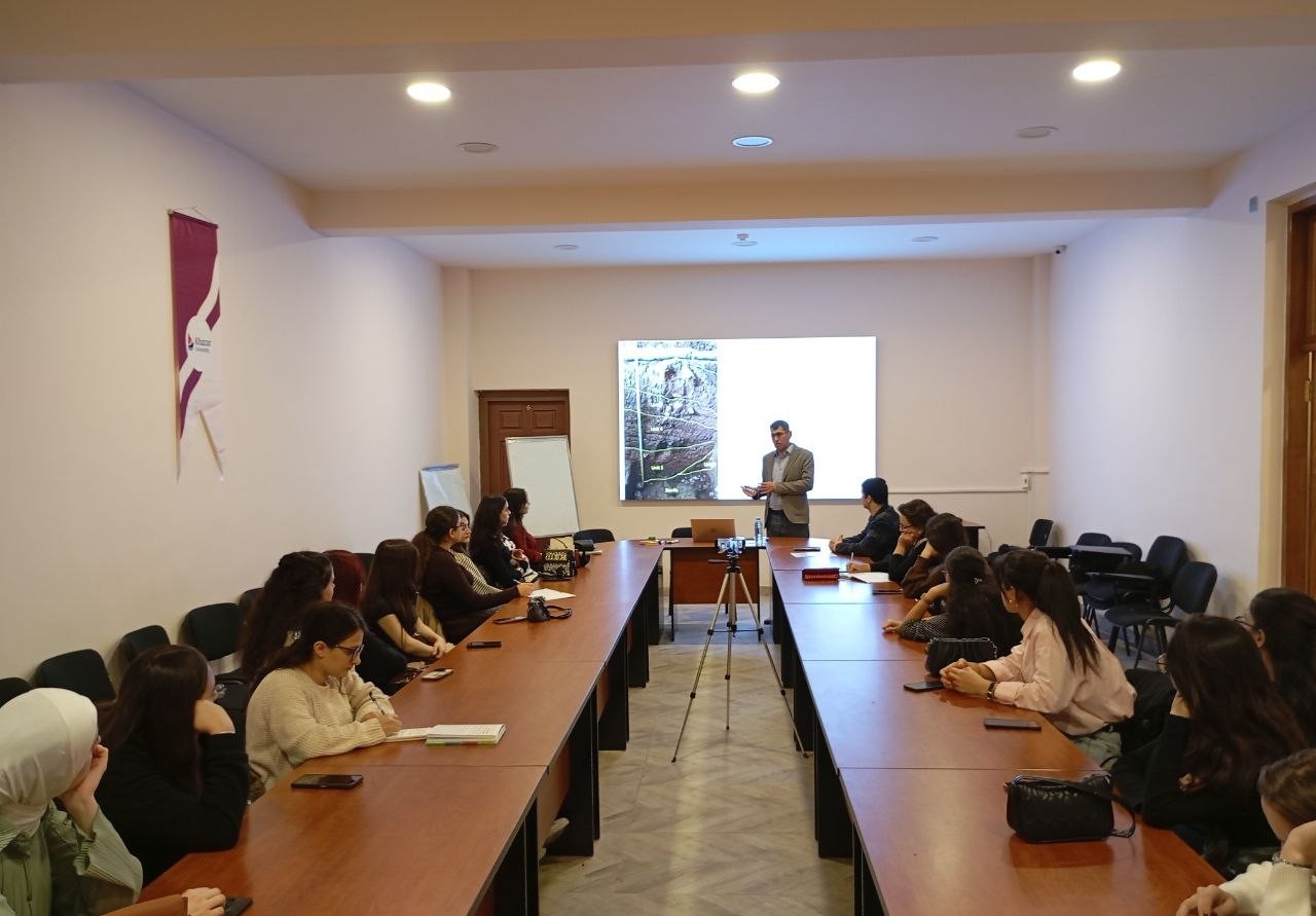 2025-ci il noyabrın 5-də Xəzər Universitetində AMEA Arxeologiya və Antropologiya İnstitutunun İçərişəhərdə yerləşən Muzey-sərgi zalında praktik yönümlü II elmi-praktik təcrübə və onunla bağlı ilk “Könüllülük proqramı”na cəlb olunan iştirakçılar üçün növbəti ustad dərsi keçirilmişdir.