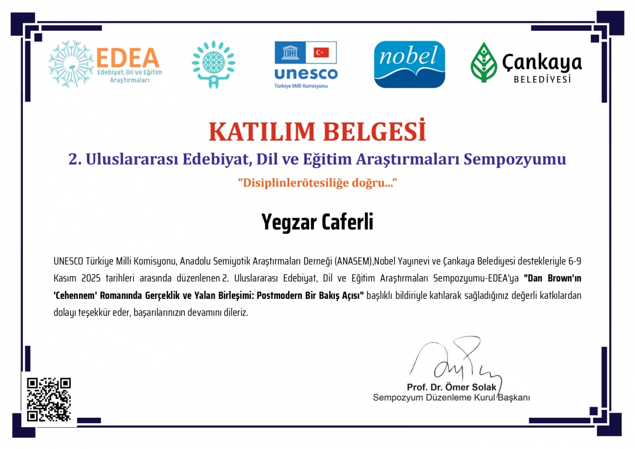 2025-ci il noyabrın 9-da Ankara şəhərində “EDEA 2025: Ədəbiyyat, Dil və Təhsil Araşdırmaları” adlı II Beynəlxalq Elmi Konfrans keçirilmişdir.