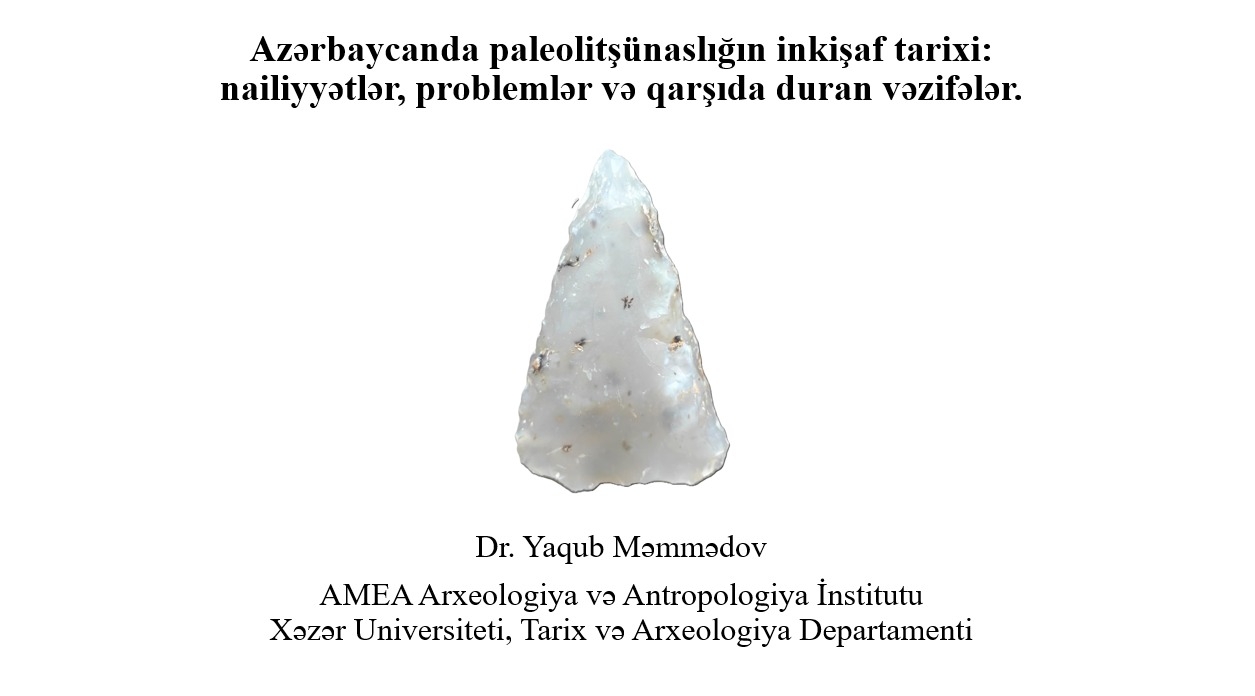 AMEA Arxeologiya və Antropologiya İnstitutunun aparıcı elmi işçisi, Azərbaycan - Yaponiya və Azərbaycan - Danimarka beynəlxalq arxeoloji ekspedisiyalarının üzvü, Xəzər Universitetində Tarix və arxeologiya departamentinin müəllimi Dr. Yaqub Məmmədov 2025-ci il noyabrın 17-də Bakı Dövlət Universitetinin (BDU) Tarix fakültəsində “Azərbaycanda paleolitşünaslığın inkişaf tarixi: nailiyyətlər, problemlər və qarşıda duran vəzifələr” mövzusunda ustad dərsi keçmişdir.