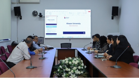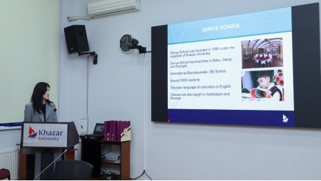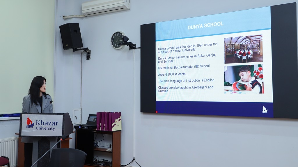 Səfərin ilk günündə qonaqlara Xəzər Universitetinin Beynəlxalq əlaqələr şöbəsi tərəfindən universitetin tarixi, strukturu, fakültələri və beynəlxalq əməkdaşlıq istiqamətləri haqqında geniş məlumat təqdim olunub.