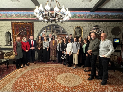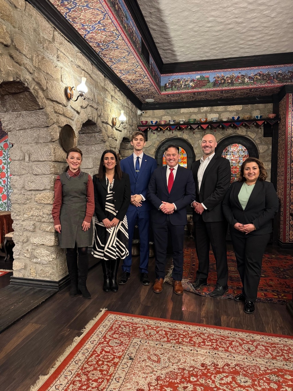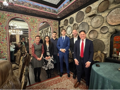 Humanitar elmlər, təhsil və sosial elmlər fakültəsinin dekanı Dr. Milana Abbasova, Beynəlxalq əlaqələr şöbəsinin müdiri Dr. Firuz Süleymanov və ABŞ Fulbrayt qrant sahibi Maykl Sipper 2025-ci il dekabrın 10-da ABŞ-ın Azərbaycandakı səfirliyinin "Şirvanşah" Muzey-Restoranda keçirilən Şükran / Milad şam yeməyinə dəvət olunublar.