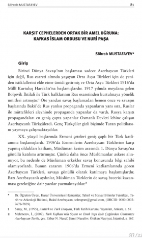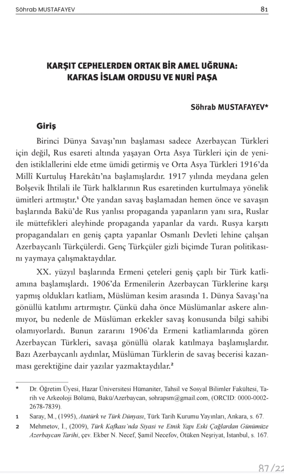 Tarix və Arxeologiya departamentinin müəllimini Dr. Söhrab Mustafayevin müəllifi olduğu “Karşıt Cephelerden Ortak Bir Amel Uğruna: Kafkas İslam Ordusu ve Nuri Paşa” adlı məqalə Iğdır Universiteti Kafkasya Araştırmaları İnstitutu (Türkiyə) tərəfindən hazırlanmış “Kafkasya Araştırmaları-IV” adlı elmi kitabda (Ankara, 2025) kitab bölümü kimi yer almışdır.