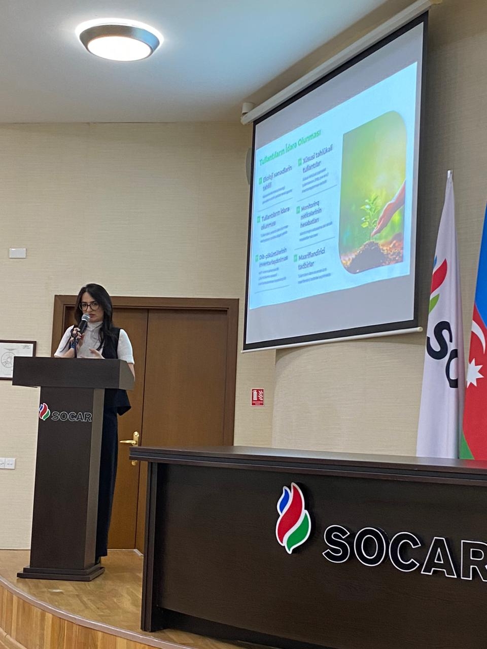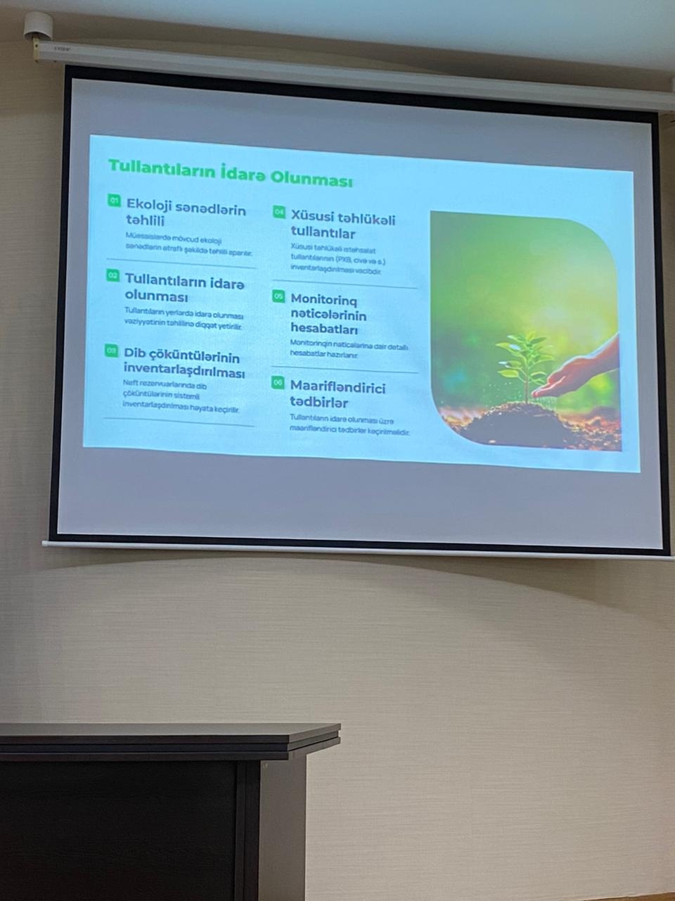 Daha sonra ƏMMD-nin ekoloqu Mehriban Ələsgərova müxtəlif istehsal müəssisələri üçün hazırlanmış ekoloji pasportlar, onların əhəmiyyəti və hazırlanma qaydaları barədə ətraflı məlumat verib.