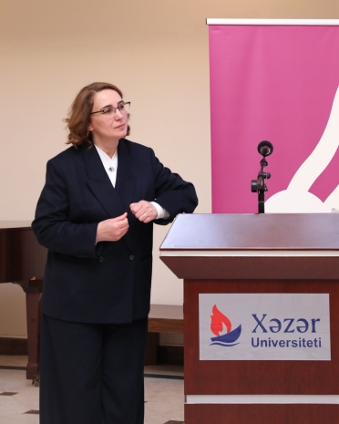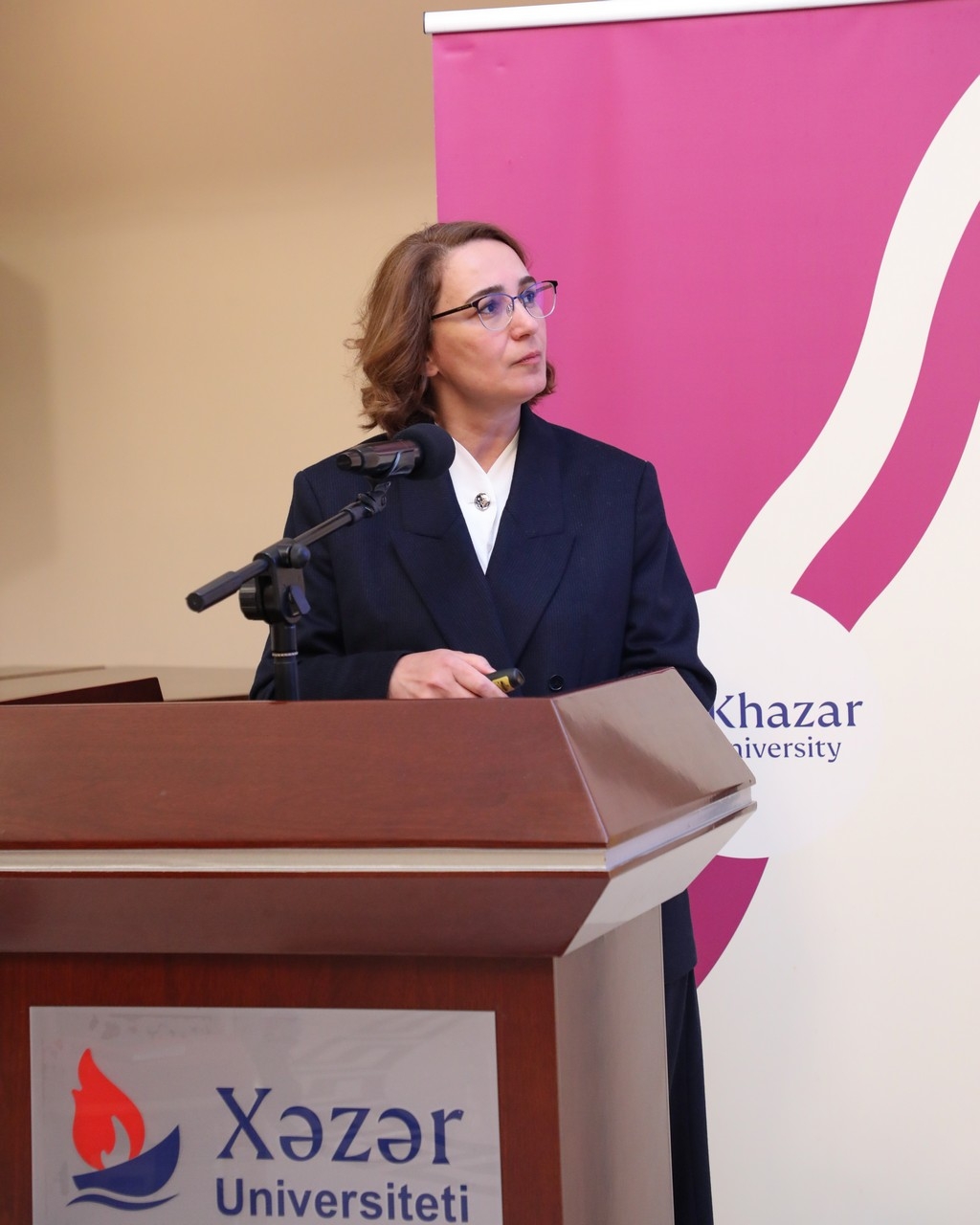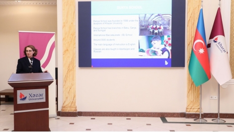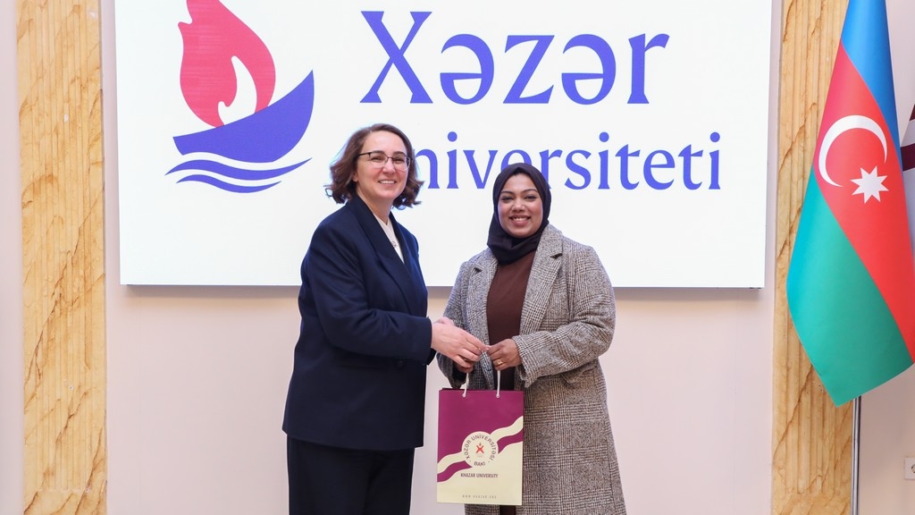 Görüş zamanı Xəzər Universitetinin rektoru Dr. Raziyə İsayeva universitetin tarixi, akademik fəaliyyəti, beynəlxalq əlaqələri və təhsil strategiyası haqqında qonaqlara ətraflı məlumat verib. Sonra qonaqların sualları cavablandırılıb və fikir mübadiləsi aparılıb.