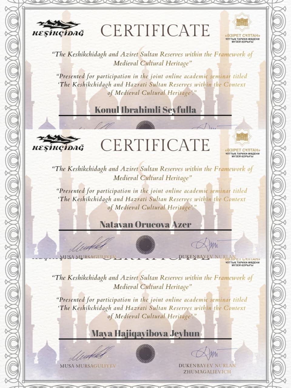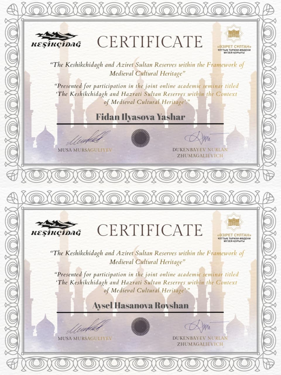 “Keşikçidağ” Dövlət Tarix-Mədəniyyət Qoruğu ilə Qazaxıstan Respublikasının “Həzrət Sultan” Milli Tarix-Mədəniyyət Muzey-Qoruğunun birgə təşkilatçılığı ilə 2026-cı il fevralın 10-da Orta əsr dövrünə aid mədəni irs nümunələrinin qorunması, öyrənilməsi və təbliği mövzusunda onlayn elmi seminar keçirilib.