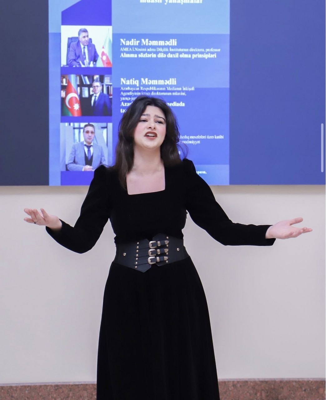 Prof. Nadir Məmmədli “Alınma sözlərin dilə daxil olma prinsipləri” mövzusunda danışaraq, sözlərin alınma prinsipləri, lüğətlərin tərtibi meyarları və leksik sistemin zənginləşmə prosesi barədə fikirlərini bölüşüb. Natiq Məmmədli “Azərbaycan dilinin mediada təzahür formaları” mövzusunda rəqəmsal platformaların dilə təsiri, media mətnlərində norma məsələləri və jurnalist məsuliyyətindən danışıb. “Müasir dövrdə ədəbi dilin estetik-psixoloji təsirləri” mövzusundan söz açan İlqar Fəhmi ədəbi dilin obrazlılıq imkanları, poeziyanın dilə təsir mexanizmi və oxucu-mətn münasibətlərindən bəhs edib.