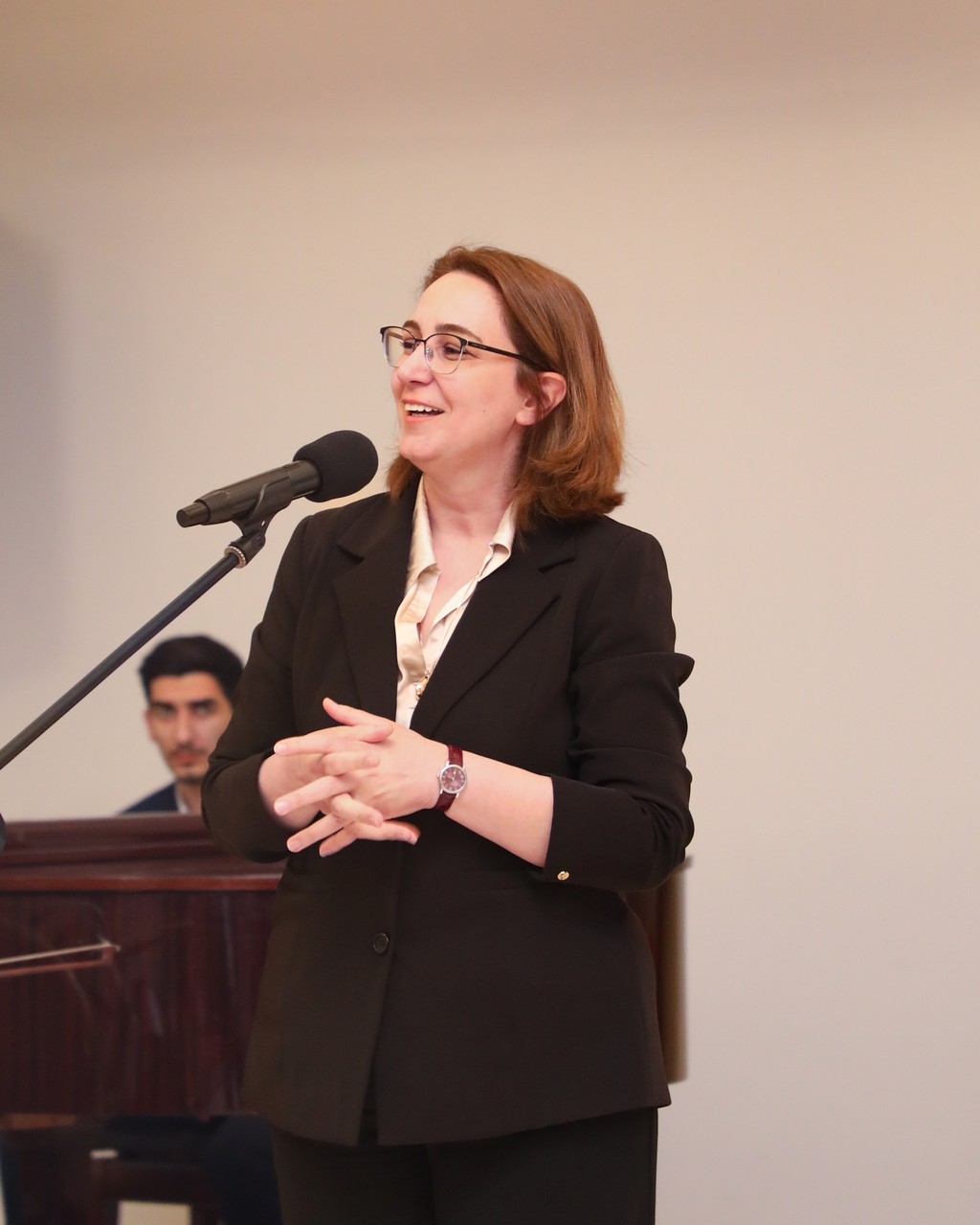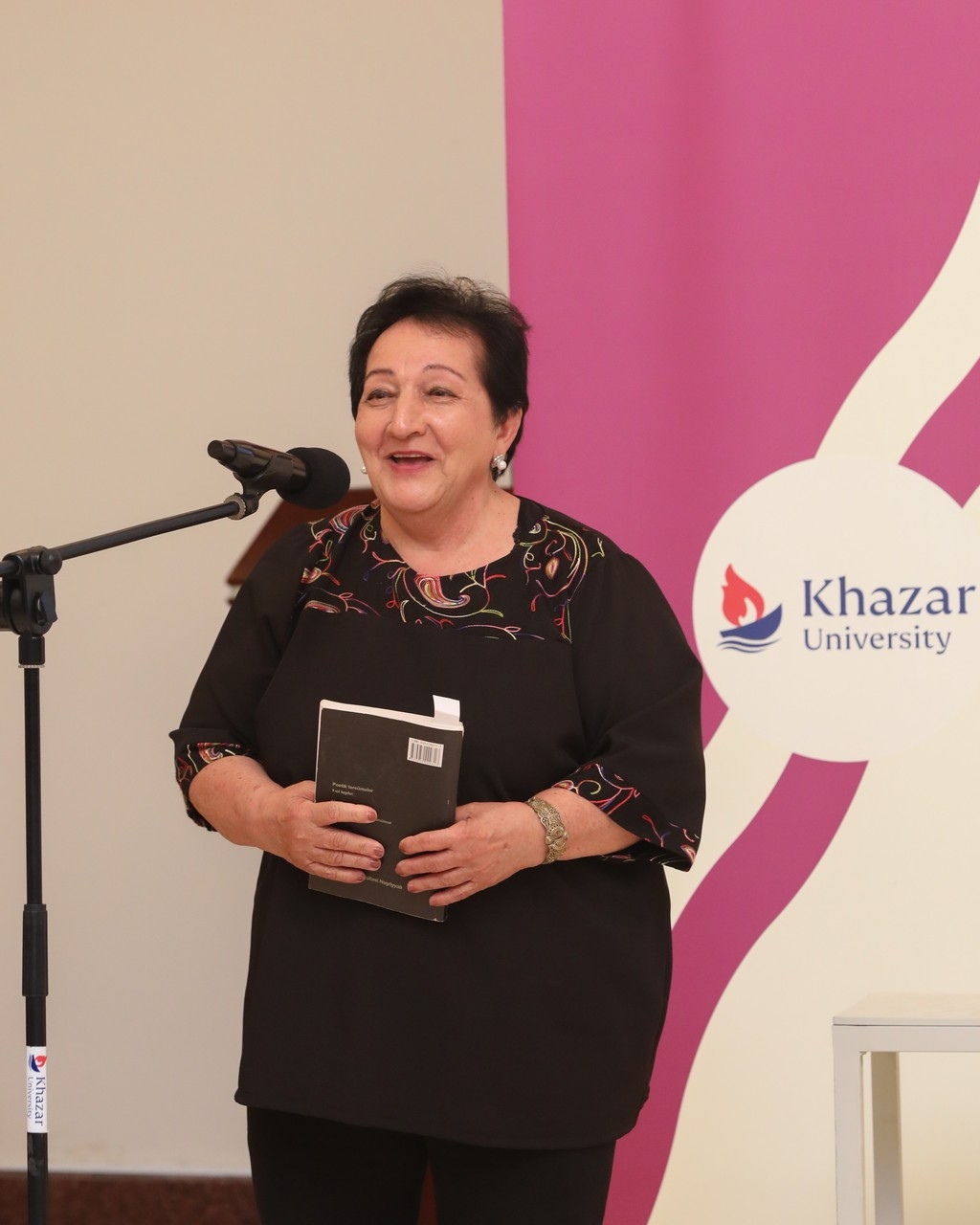 İngilis dili və ədəbiyyatı departamentinin müəllimi Firəngiz Nəsirova Hamlet İsaxanlının ingilis və rus dillərində yazılmış şeirlərindən etdiyi tərcümələrdən parçalar səsləndirib.