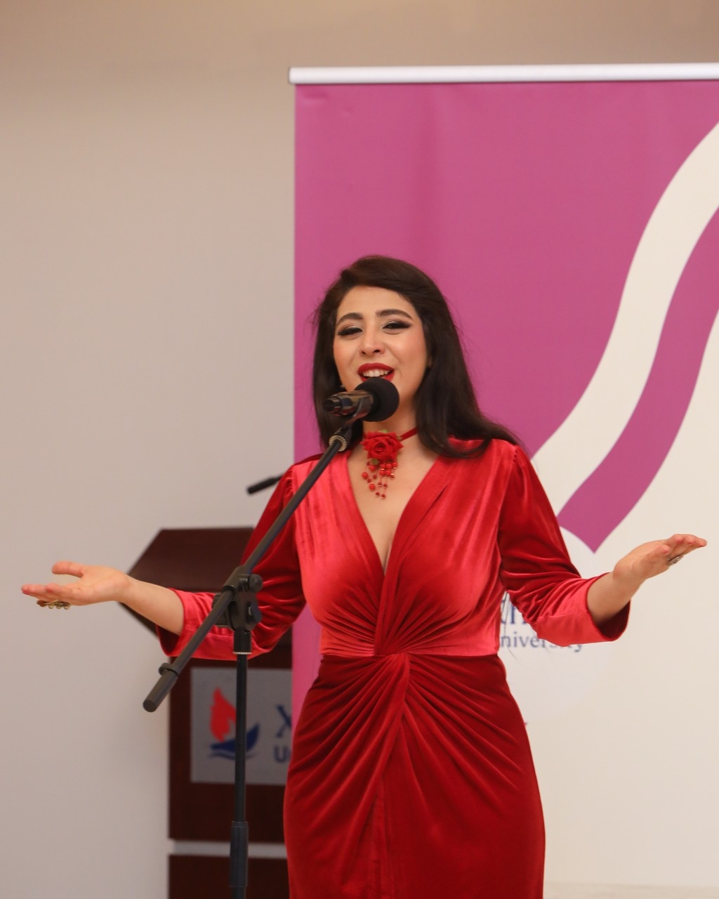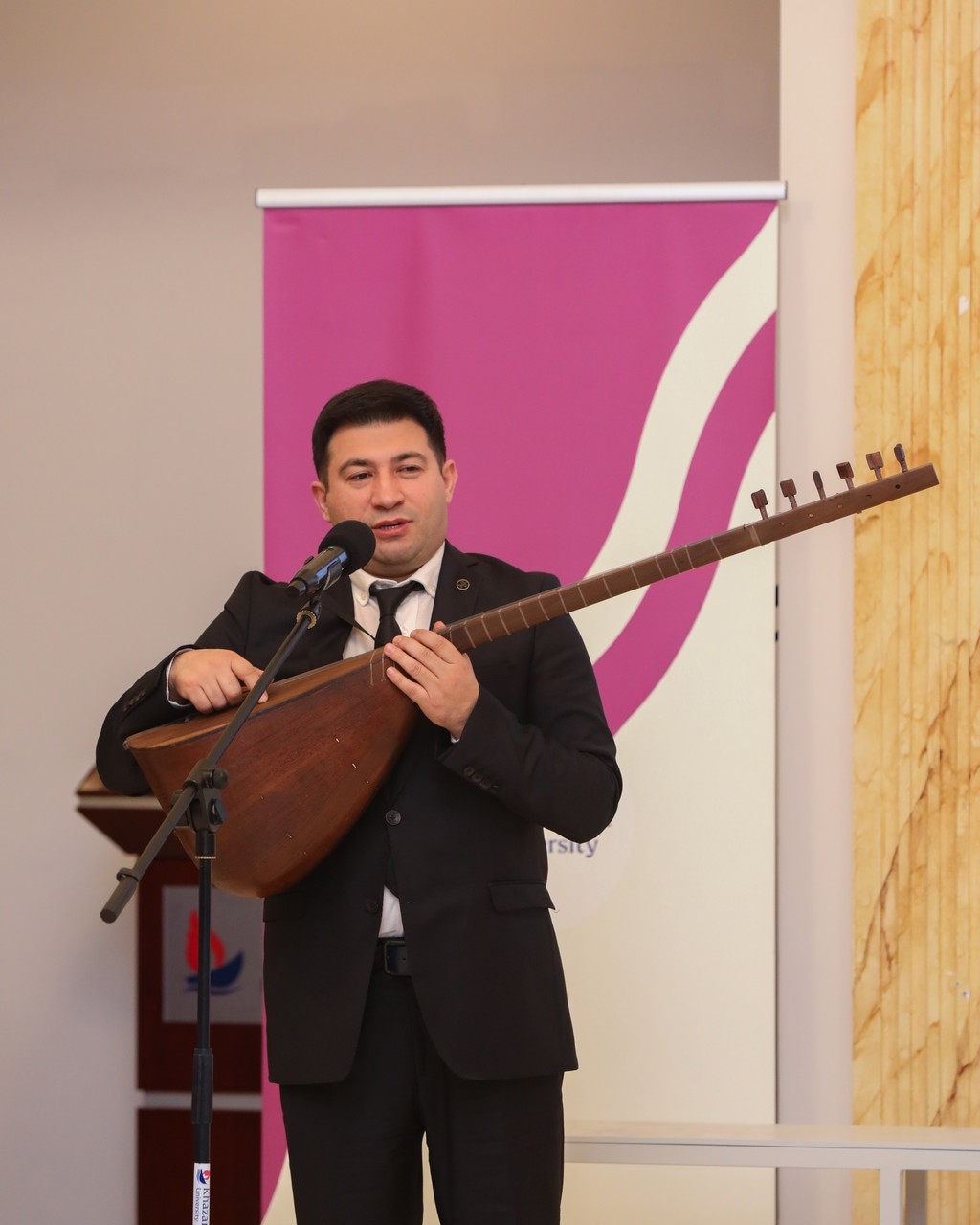 Humanitar, təhsil və sosial elmlər fakültəsinin dekanı Dr.Milana Abbasova isə “Küçələrə su səpmişəm” xalq mahnısını ifa edib.