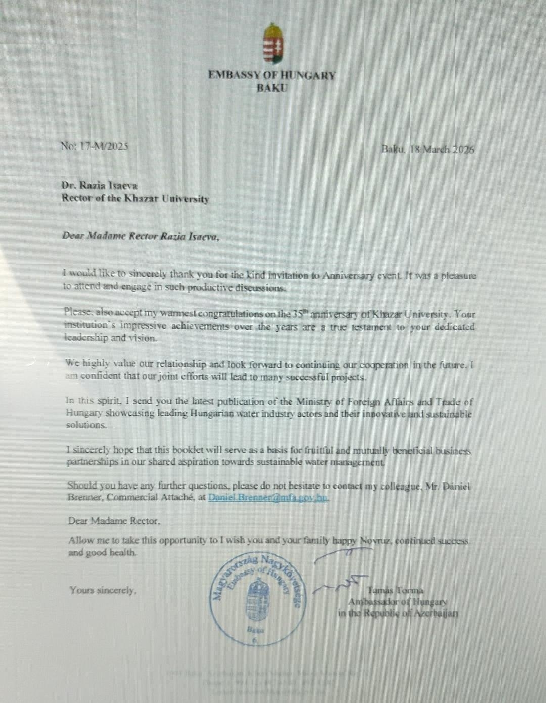Xəzər universitetinə 35 illik yubileyi münasibətilə təbrik