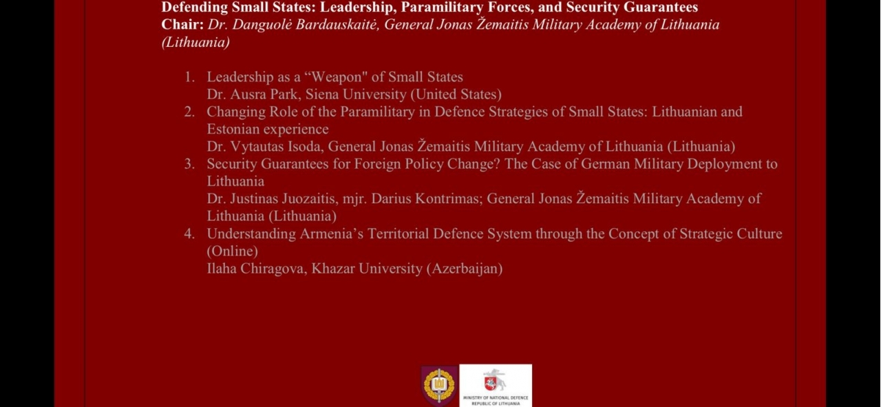 İlahə Çıraqova konfransda “Ermənistanın ərazi müdafiə sisteminin strateji mədəniyyət konsepti əsasında təhlili” (“Understanding Armenia’s Territorial Defence System through the Concept of Strategic Culture”) mövzusunda məruzə ilə çıxış edib.