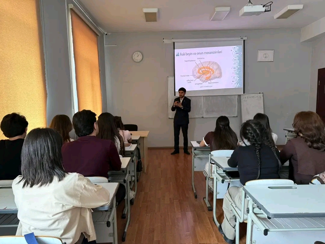 Xəzər Universitetinin Psixologiya departamentinin əməkdaşı və Xəzər Psixoloji Xidmət Mərkəzinin psixoloqu Mirsadiq Muxtarov 2026-cı il aprelin 10-da "Asılılığın psixologiyası" mövzusunda tələbələrə maarifləndirici və psixoprofilaktik seminar keçib. Seminarın əsas məqsədi yalnız diqqəti maddə asılılığının zərərlərinə yönəltmək deyil, eyni zamanda, gənclərdə bu mövzu ilə bağlı dərin anlayış formalaşdırmaq, onların risk faktorlarını düzgün qiymətləndirmə bacarıqlarını inkişaf etdirmək və sağlam həyat tərzinə yönəltmək olub.