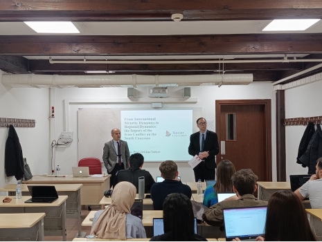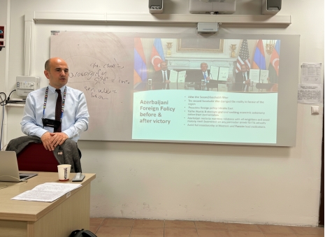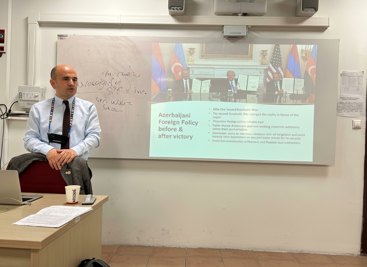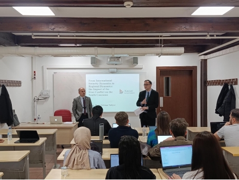 Aprelin 21-də Dos. Vəliyev proqram çərçivəsində azərbaycanlı, türk, fransız, belçikalı və yunan tələbələr üçün mühazirə oxuyub. Seminar “Beynəlxalq təhlükəsizlik dinamikasından regional dinamikaya: İran münaqişəsinin Cənubi Qafqaza təsiri” (“From International Security Dynamics to Regional Dynamics: the Impact of the Iran Conflict on the South Caucasus”) mövzusuna həsr olunub.