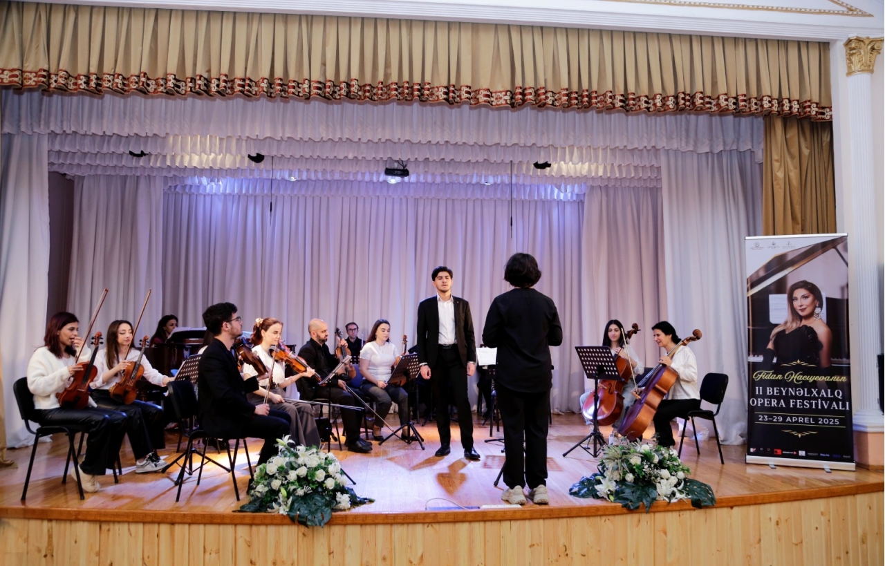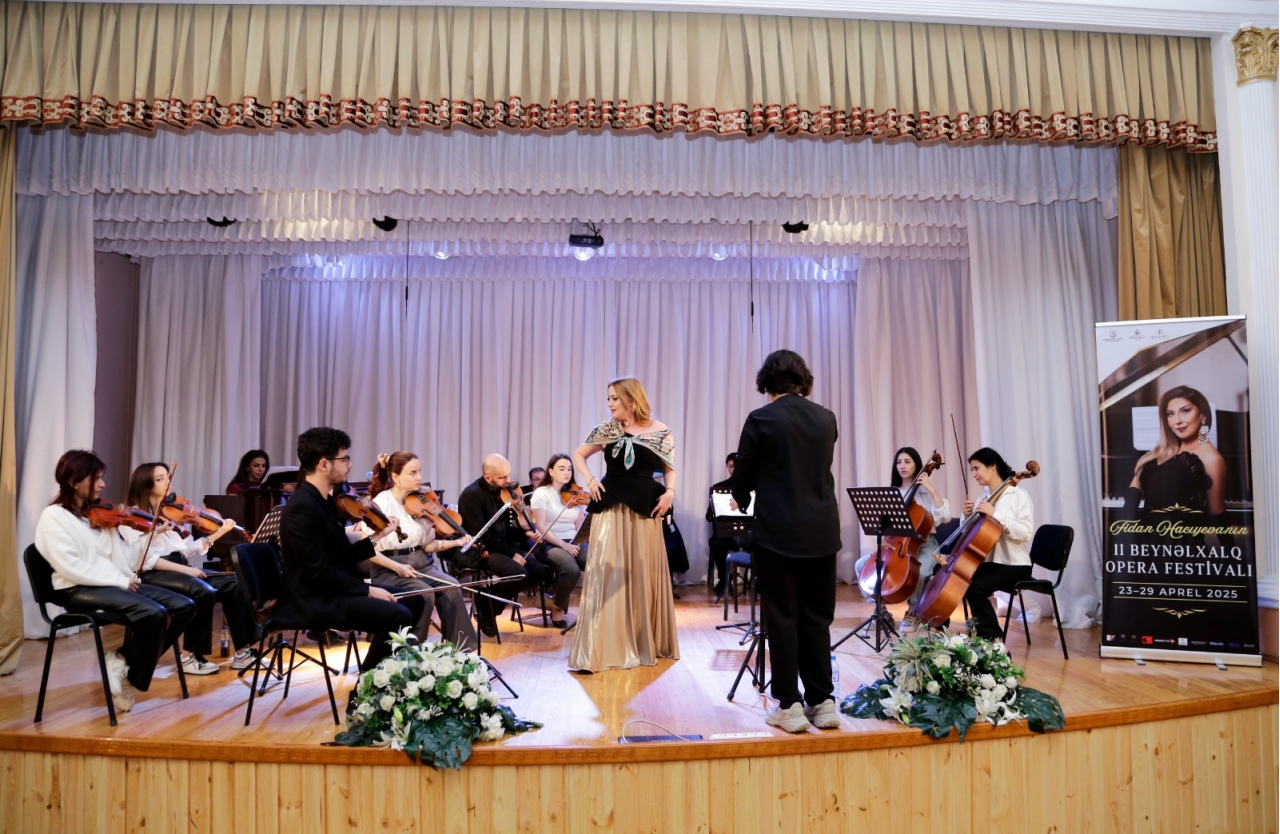 The next concert of the II International Opera Festival of Azerbaijan's People's Artist Fidan Hajiyeva (April 23-29) was held at Khazar University on April 28, 2025. At the concert titled "Future of Opera, New Breath," young vocalists - students from Azerbaijan National Conservatory and Azerbaijan State Medical University performed examples from Azerbaijani and world opera and operetta art, songs and romances accompanied by Khazar University Chamber Orchestra (artistic director is the head of the university's Music and Art Department, honored teacher, pianist Zulfiyya Sadiqova). International competition laureates Aydin Suleymanov and Nurlana Asgarova performed the duet of Telli and Vali from Uzeyir Hajibeyli's operetta "Arshin Mal Alan." Rahim Khalilov, Ayan Bayramova, Ruslan Persan, Shams Jafarova, Asim Muradov, Anar Hamidli, Regina Majidova and others also performed. Fidan Hajiyeva sang the aria "Habanera" from French composer Georges Bizet's opera "Carmen."