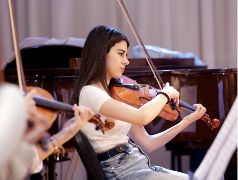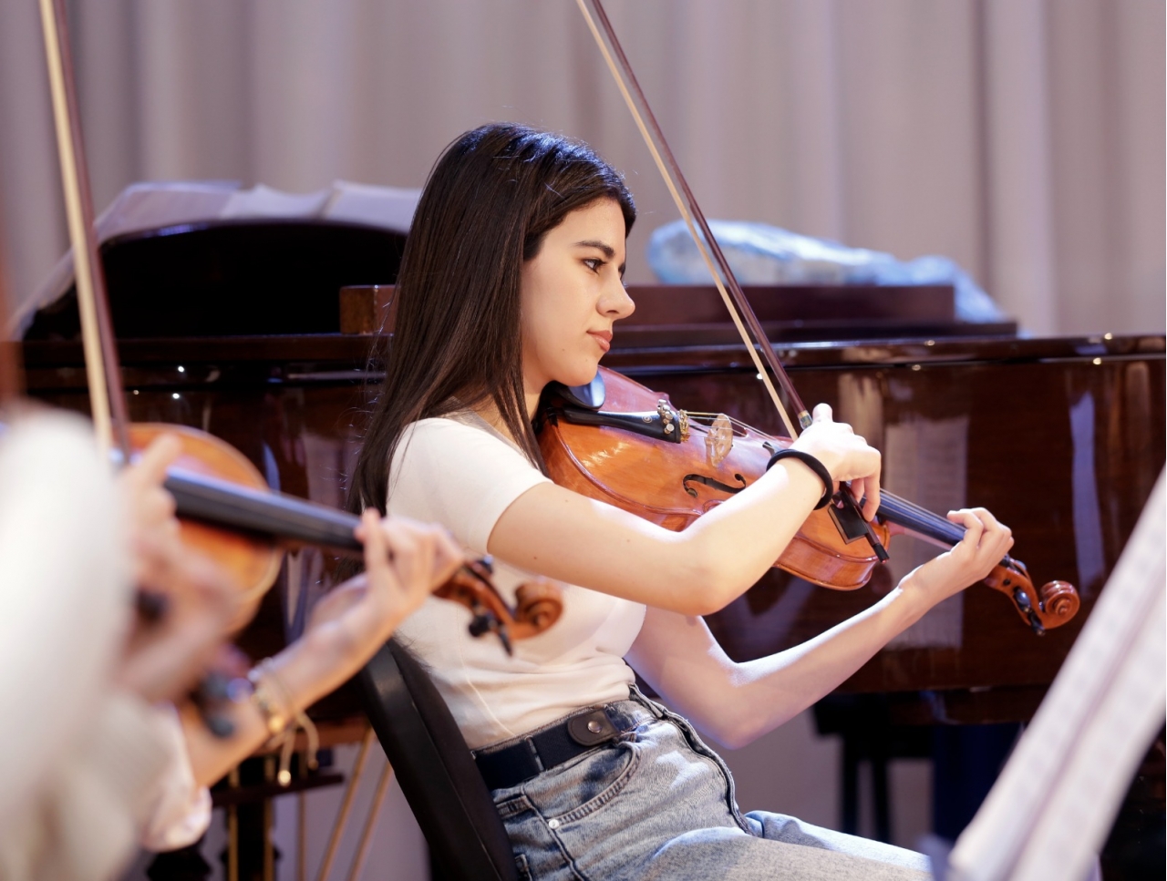 At the end of the concert, Fidan Hajiyeva performed the song "Azerbaijan" by Muslim Magomayev together with the students.