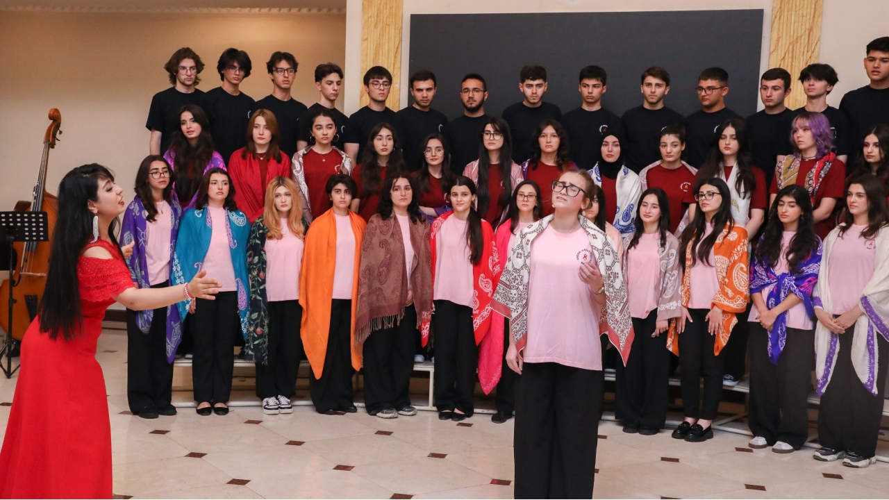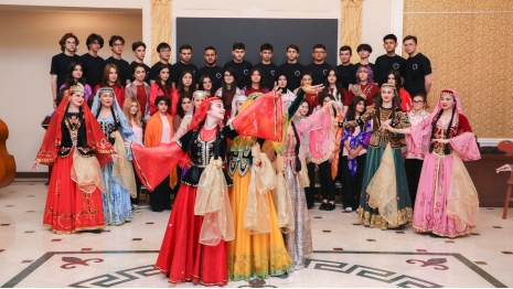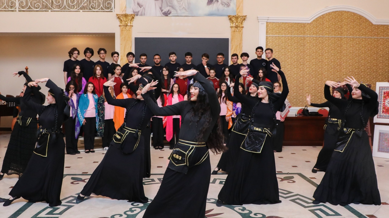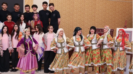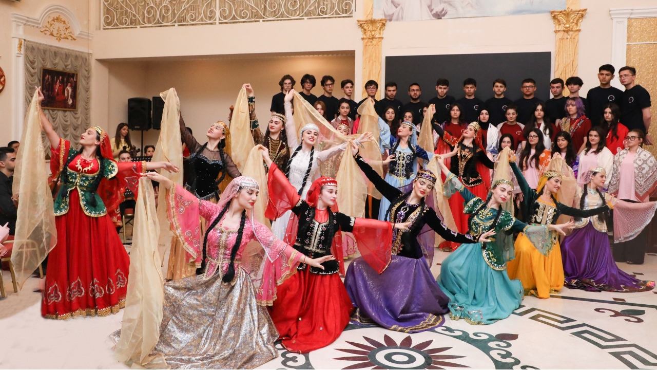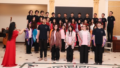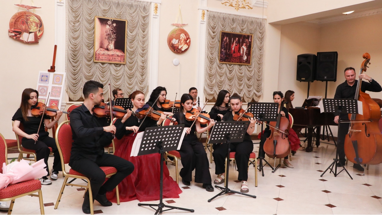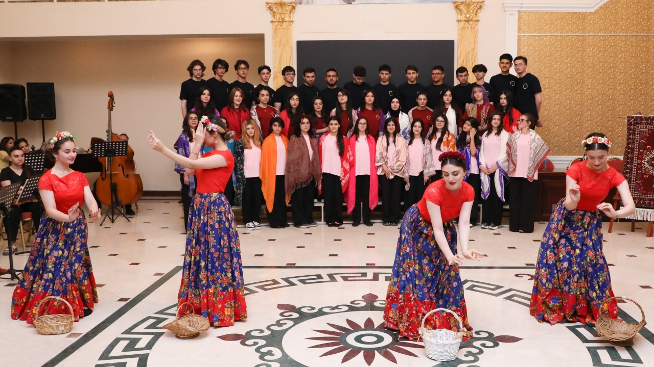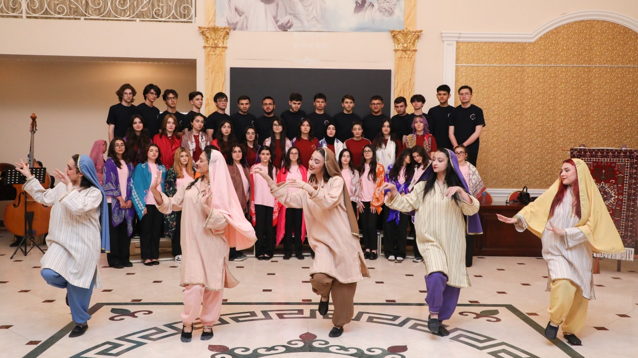 The head of the Music and Fine Arts Department, honored teacher and pianist Zulfiyya Sadiqova opened the event and provided information about the students' activities. The concert began with a performance by a student choir under the direction of Mahsati Azafli, featuring works by Uzeyir Hajibayli, Fikrat Amirov, and other Azerbaijani composers, and dance performances were presented.