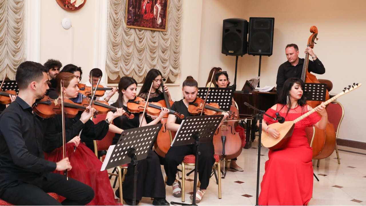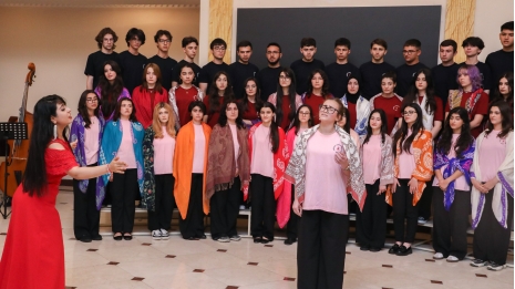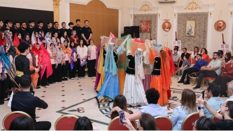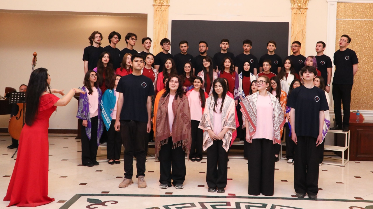 On July 4, 2025, the Music and Fine Arts Department presented the traditional report concert and exhibition of first-year students in the Marble Hall of Khazar University. Students trained during the academic year by the department's faculty members – Mahsati Azafli (vocal, choir), Sabina Ismayilova (dance), and Vafa Alizade (carpet painting) – demonstrated their skills.