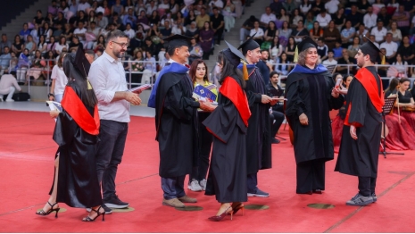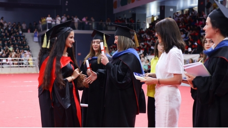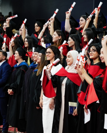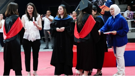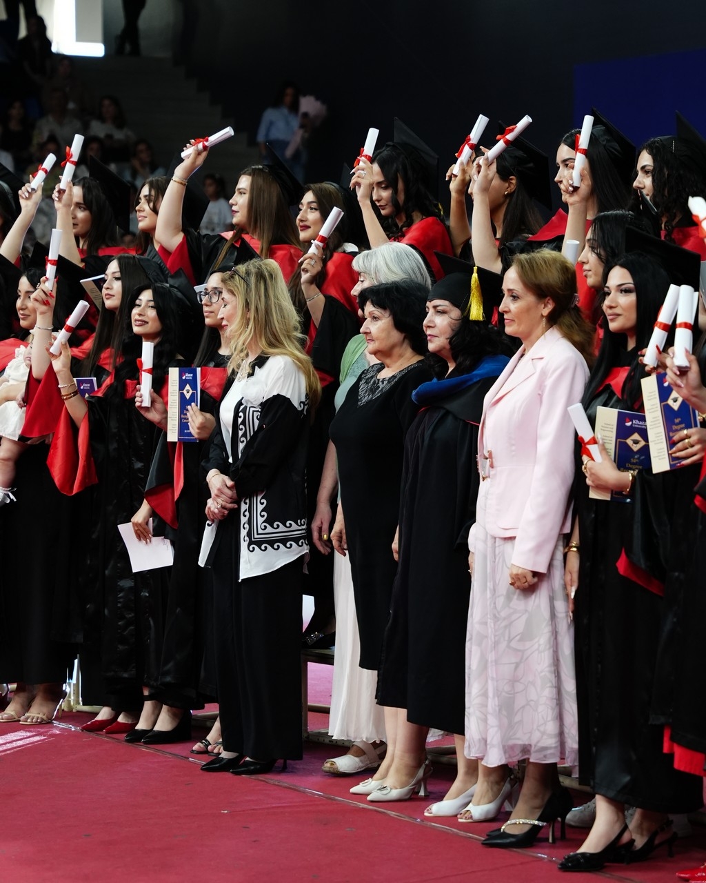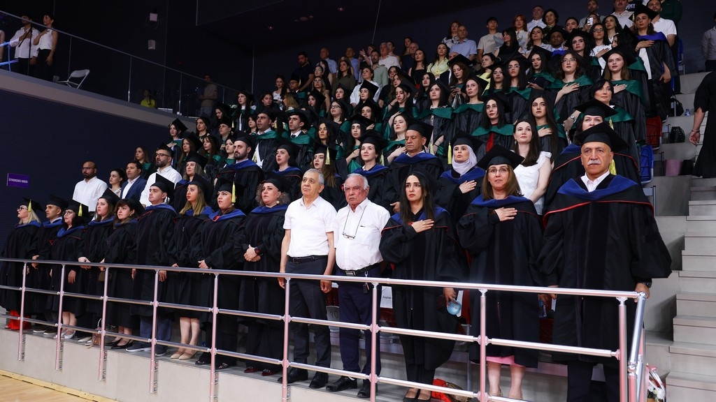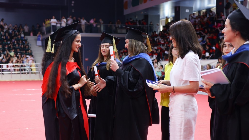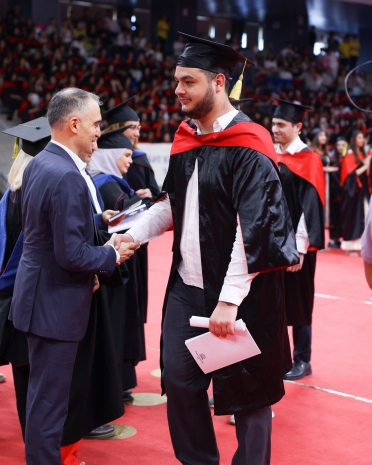 Subsequently, the presentation of diplomas to bachelor's and master's degree recipients began. Graduates from the faculties of Natural Sciences and Engineering, Economics and Management, Humanities, Education and Social Sciences, Hasvet Veterinary Medicine, Graduate School of Science, Arts and Technology, and Graduate School of Economics and Business were invited to the stage. The diplomas were presented to graduates by university administration, faculty deans, department heads, teachers, and staff members.