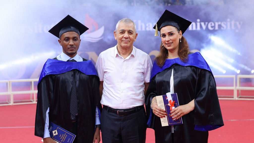 It was noted that during the current academic year, three doctoral students from the university - Jamila Aghamaliyeva (Comparative-Historical and Comparative-Typological Linguistics), Abebe Girma Gule (General Economics), and Nazakat Zamanova (Organization and Planning of Education) - were awarded the Doctor of Philosophy degree and diploma by the Higher Attestation Commission under the President of the Republic of Azerbaijan. Prof. Acad. Hamlet Isakhanli, founder of Khazar University and Chairman of the Board of Directors and Trustees, congratulated Jamila Aghamaliyeva and Abebe Girma Gule on stage and wished them success in their scientific activities.
