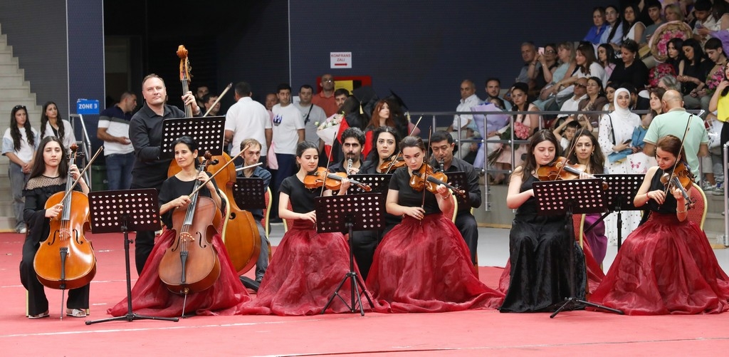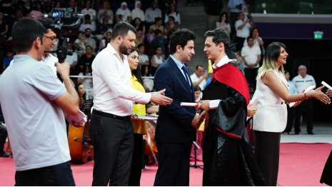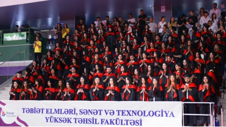 On July 13, 2025, Khazar University's 54th graduation ceremony was held at the Baku Sports Palace. The event was attended by the university administration, deans, department heads, faculty and students, parents, alumni, and guests. Member of the Milli Majlis and Khazar University alumnus, Jeyhun Mammadov, also participated as a guest of honor.
