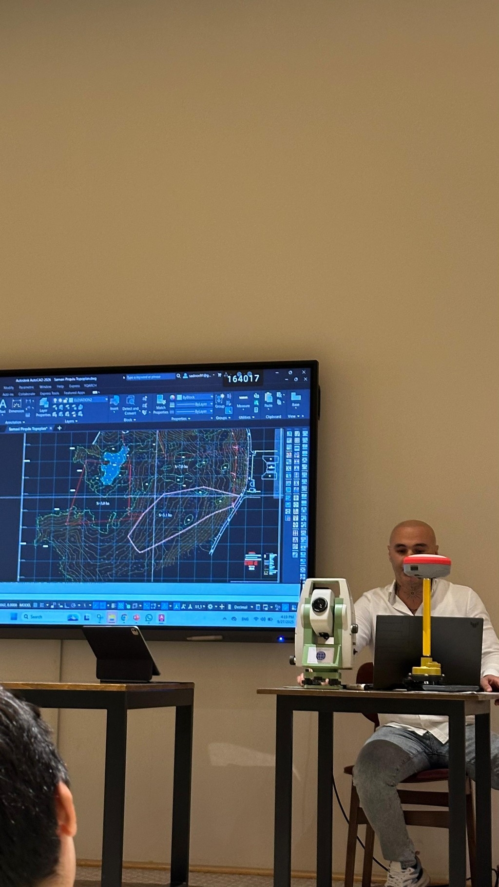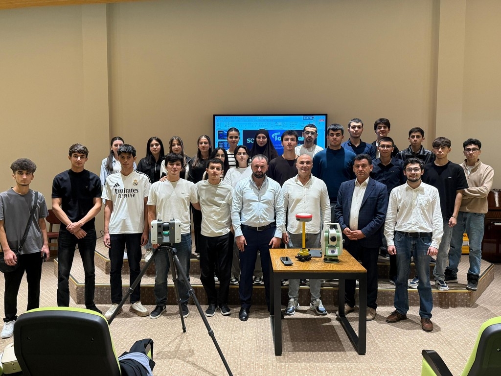 On September 27, 2025, a seminar on "Fundamentals of Geodesy and Topography" was held at Khazar University's Bakikhanov branch, organized by the Department of Civil Engineering and conducted by Topoqraf.AZ LLC. Civil engineers, faculty members, and students participated in the event.