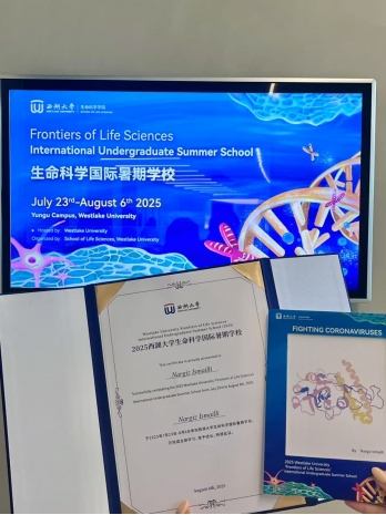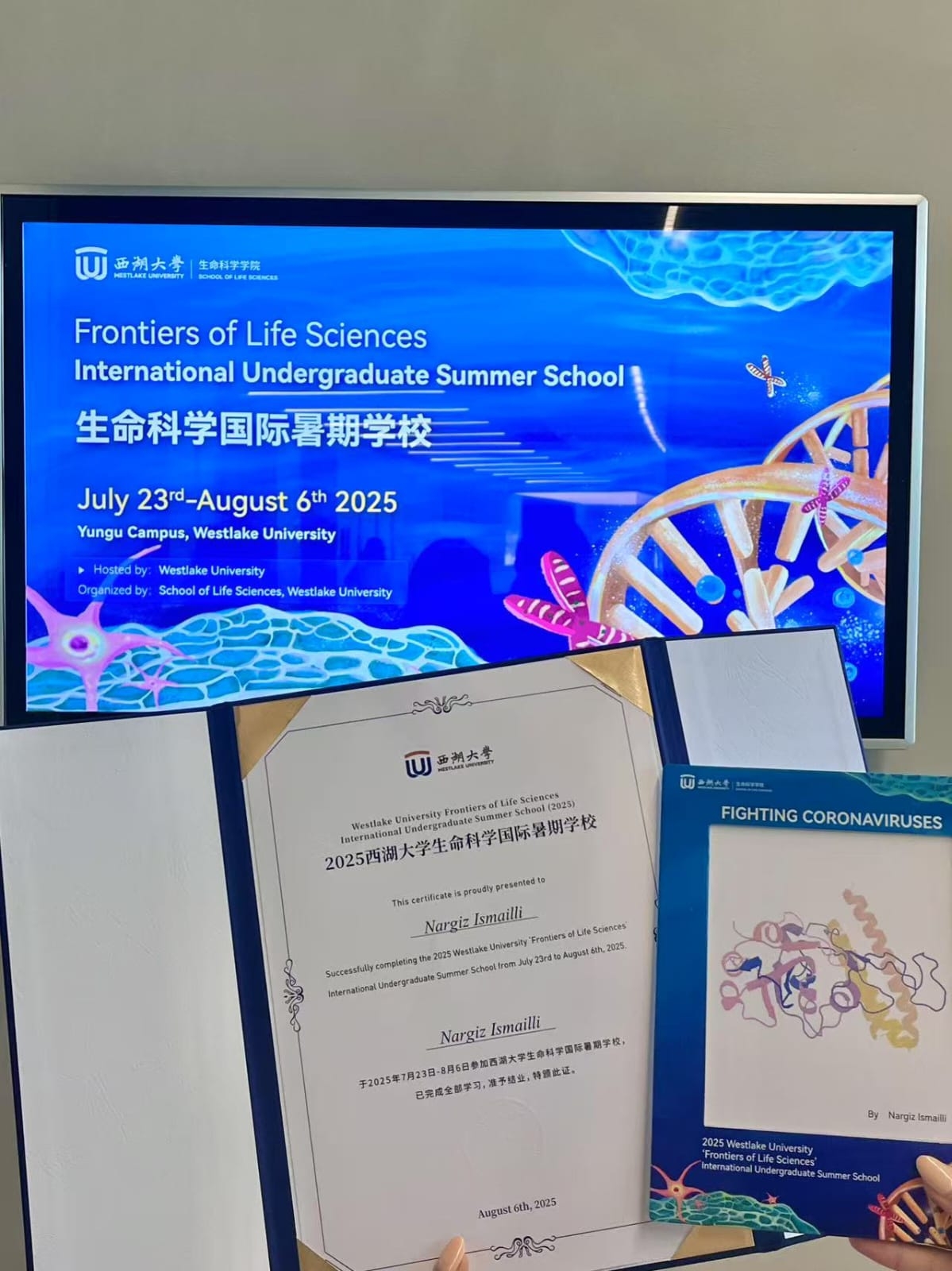 Between July 23 and August 6, 2025, Nargiz Ismayilli, a fifth-year student majoring in "Chemistry and Biology Teaching" at the Department of Life Sciences, School of Science and Engineering, participated in the "Frontiers in Life Science" international summer school organized by Westlake University in China.