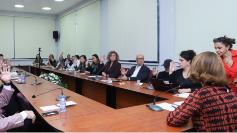 The second agenda item concerned the transfer of doctoral students admitted to the PhD program from full-time to part-time study. Gunel Bahaddinova, Secretary of the Scientific Council, reported that 12 local doctoral students were admitted to Khazar University in the current academic year. Of these, 2 are studying part-time and 10 are studying full-time. Five of the full-time doctoral students have submitted official applications requesting that their study format be changed from full-time to part-time. The applications were positively evaluated by the Scientific Council members and an appropriate decision was adopted.