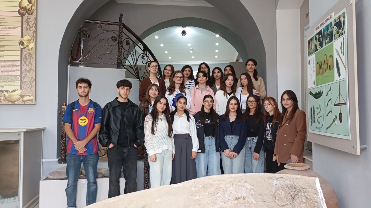 On October 15, 2025, first-year students studying in the History Teaching major at Khazar University's School of Humanities, Education and Social Sciences participated in an excursion at the Museum Exhibition Hall of the ANAS Institute of Archaeology and Anthropology. The visit was organized under the guidance of Orkhan Zamanov, lecturer at the Department of History and Archaeology. The purpose of the excursion was for students to become closely acquainted with material culture specimens from ancient periods and to further expand their knowledge about Azerbaijan's archaeological heritage.
