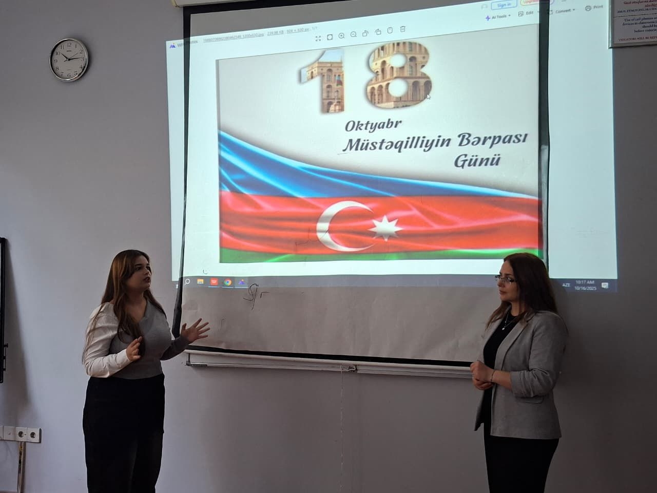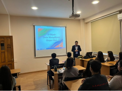The seminars were organized by department faculty members Dr. Rukhsara Guliyeva, Dr. Yagub Mammadov, and Dr. Odar Alizade. They discussed the main stages of Azerbaijan's independence history, the historical significance of the restoration of state independence in 1991, and the process of independent state-building in the modern period.