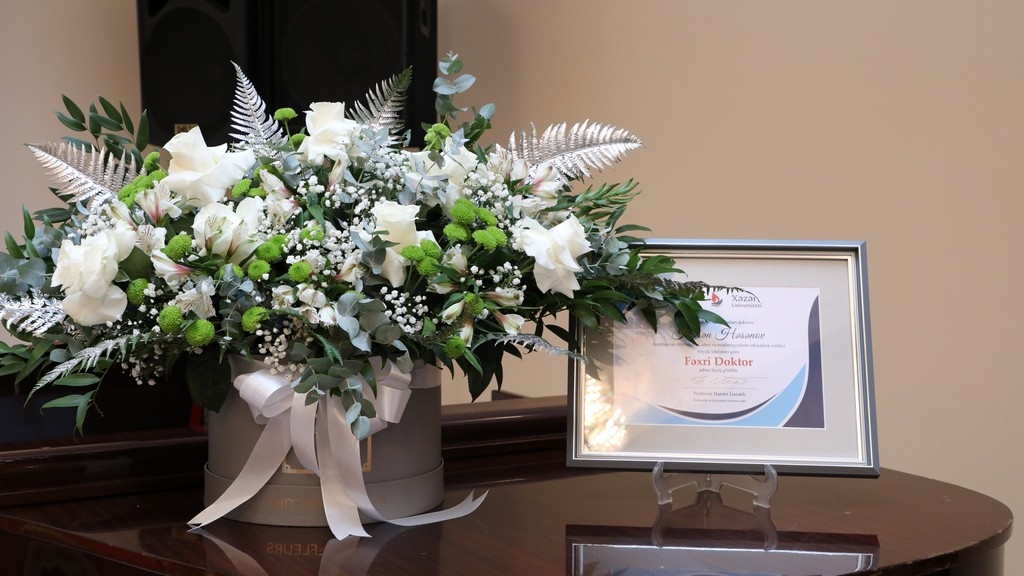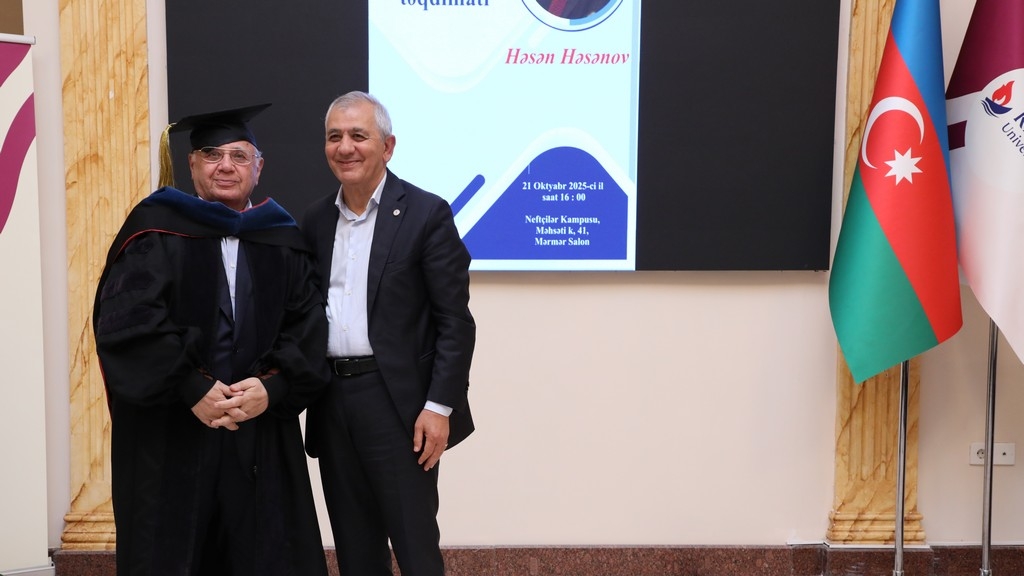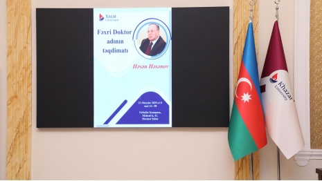 On October 21, 2025, a ceremony for the presentation of Khazar University's Honorary Doctorate diploma to prominent statesman, scholar Hasan Hasanov was held in the Marble Hall. The event was attended by the university's leadership and staff, as well as guests.