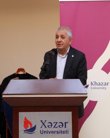 The university's founder and Chairman of the Board of Directors and Trustees, Prof. Acad. Hamlet Isakhanli, delivered a speech expressing gratitude for the fact that Khazar University was established in 1991 through the decrees of Hasan Hasanov, then Chairman of the Council of Ministers of the Azerbaijan SSR, and spoke about the subsequent development paths of Khazar, the country's first private higher education institution.