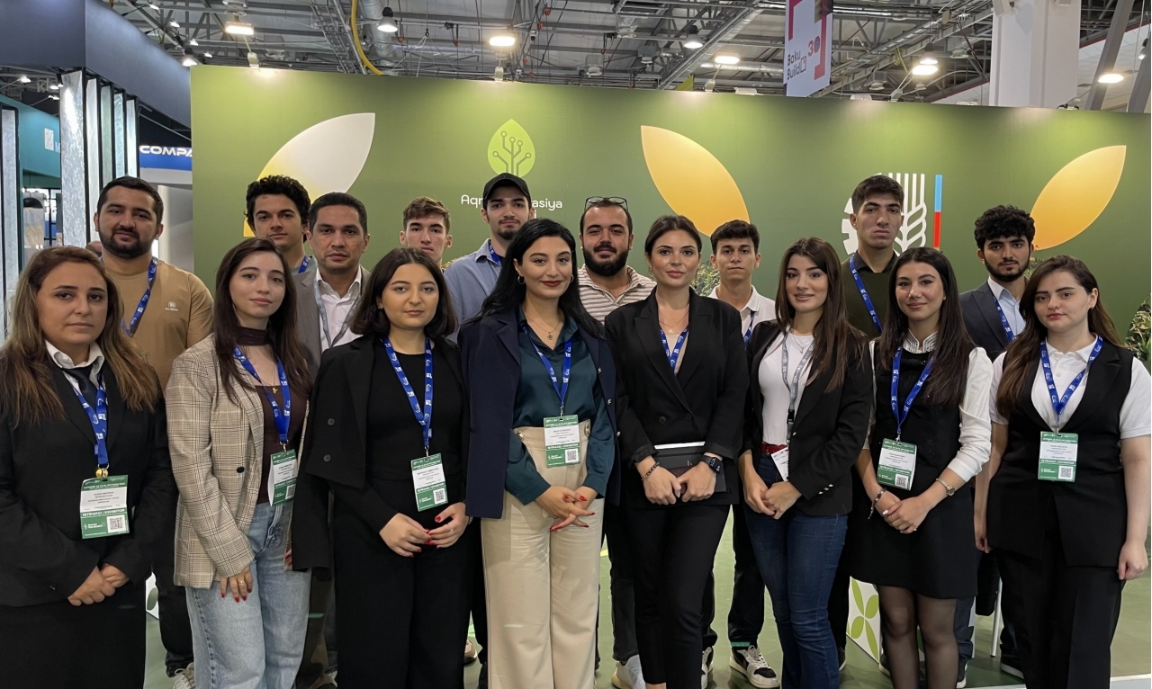 At the stands organized by the Ministry of Agriculture and the Agrarian Innovation Center, the project "BeeLance: Balanced Smart Environment for Bees and Nature" was exhibited by Khazar University students Egana Mammadova (Computer Engineering, 4th year), Mehriban Humbatzadeh (Design, 2nd year), and Nijat Valiyev (Computer Science, 1st year), among other agrarian startups. The project was prepared under the mentorship of Fariz Hasanli, coordinator of the Khazar University Innovation Center.