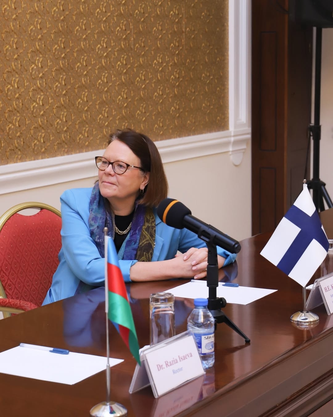 The event was held with the participation of the university's rector Dr. Raziya Isayeva, faculty deans, academic staff and students. Rector Dr. Raziya Isayeva welcomed the Ambassador and discussed opportunities for educational and scientific cooperation between Finland and Azerbaijan.