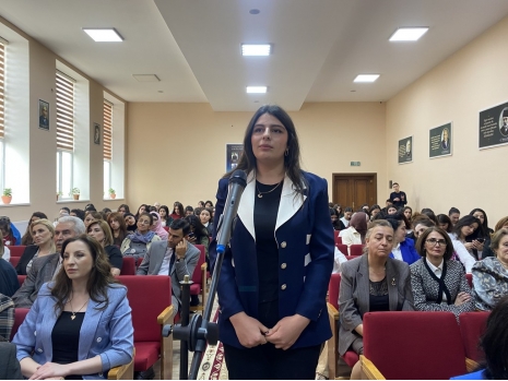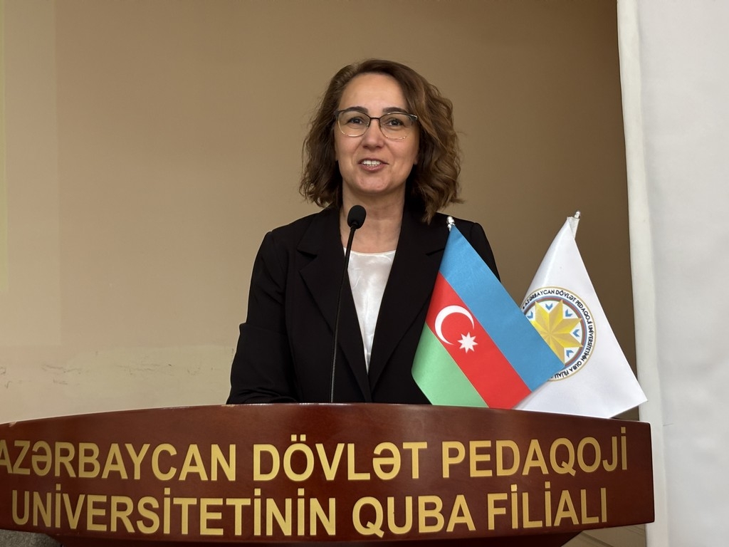 At the conclusion, Dr. Raziya Isayeva presented commemorative gifts to Assoc. Prof. Yusif Aliyev, Director of ASPU, and Assoc. Prof. Dilbar Zeynalova, Head of the Department of Languages and Literature, presented them to Assoc. Prof. Gulshan Aghabey, Head of the Department of Literature and Languages at ASPU.