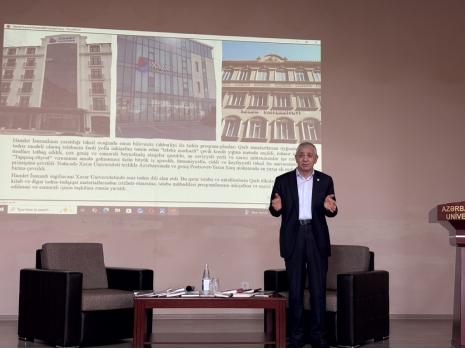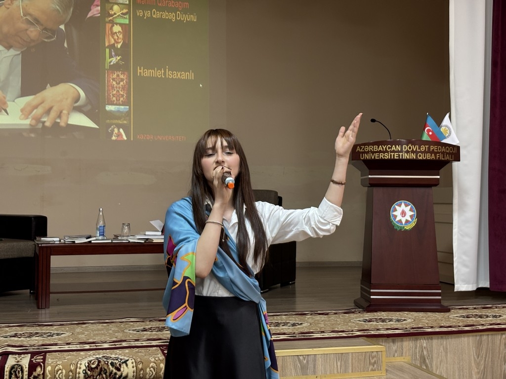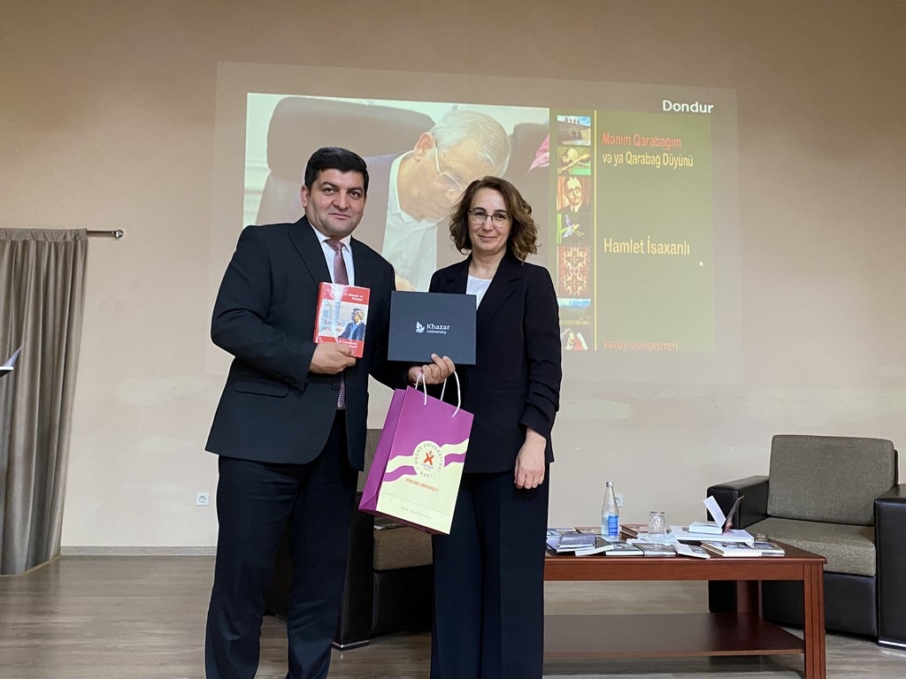 On October 29, 2025, a presentation of the book "My Karabakh or the Karabakh Knot" by Prof. Acad. Hamlet Isakhanli, founder of the university and Chairman of the Board of Directors and Trustees, was held at the ASPU Guba Branch, organized by Khazar University's Department of Languages and Literature. The event was attended by the leadership of Khazar University and ASPU Guba Branch, faculty members, students, and guests.