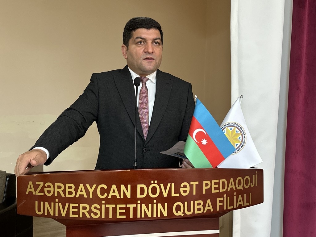Following the opening remarks by Assoc. Prof. Gulshan Aghabey, Head of the Department of Literature and Languages at ASPU (Guba), who served as moderator of the presentation ceremony, Assoc. Prof. Yusif Aliyev, Director of ASPU (Guba), addressed the audience, greeting the guests and discussing Hamlet Isakhanli's contributions to science and literature.