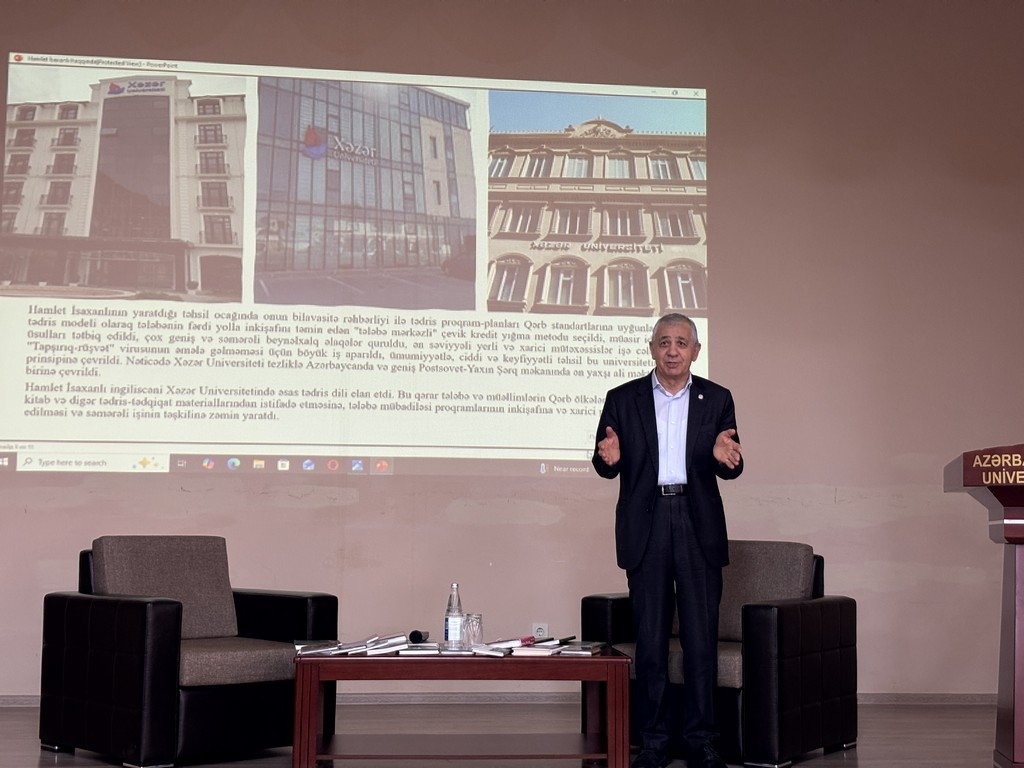 Dr. Raziya Isayeva, Rector of Khazar University, provided information about the university's journey, achievements, future prospects. Assoc. Prof. Hikmat Guliyev, Director of the Institute of Folklore of the ANAS, and lecturer at Khazar University, spoke about the scientific, literary, and social significance of the work. Dilbar Zeynalova, Head of the Department of Languages and Literature, recited H. Isakhanli's poem "Side by Side with the Waves."
