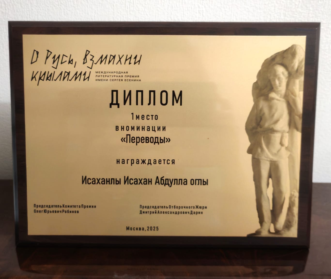 Isakhan Isakhanli became the winner of this award in 2025 in the translation category. It should be noted that Isakhan Isakhanli was also awarded the same prize in 2015 in the literary criticism category ("Vzyskuyushchim vzglyadom").