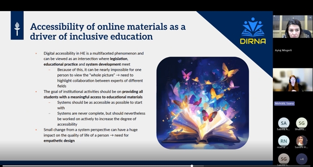 At the event, Saana Mehtälä, representative of the University of Jyväskylä (Finland), delivered a presentation on "Data management in inclusive education, open science resources and research accessibility." She provided information about JYX, the University of Jyväskylä's digital platform, and presented in detail the process of providing data and metadata. She then discussed the Converis research information system (CRIS) and explained to participants the support the system provides in enhancing the visibility of researchers' scientific activities, increasing accessibility, and expanding impact.