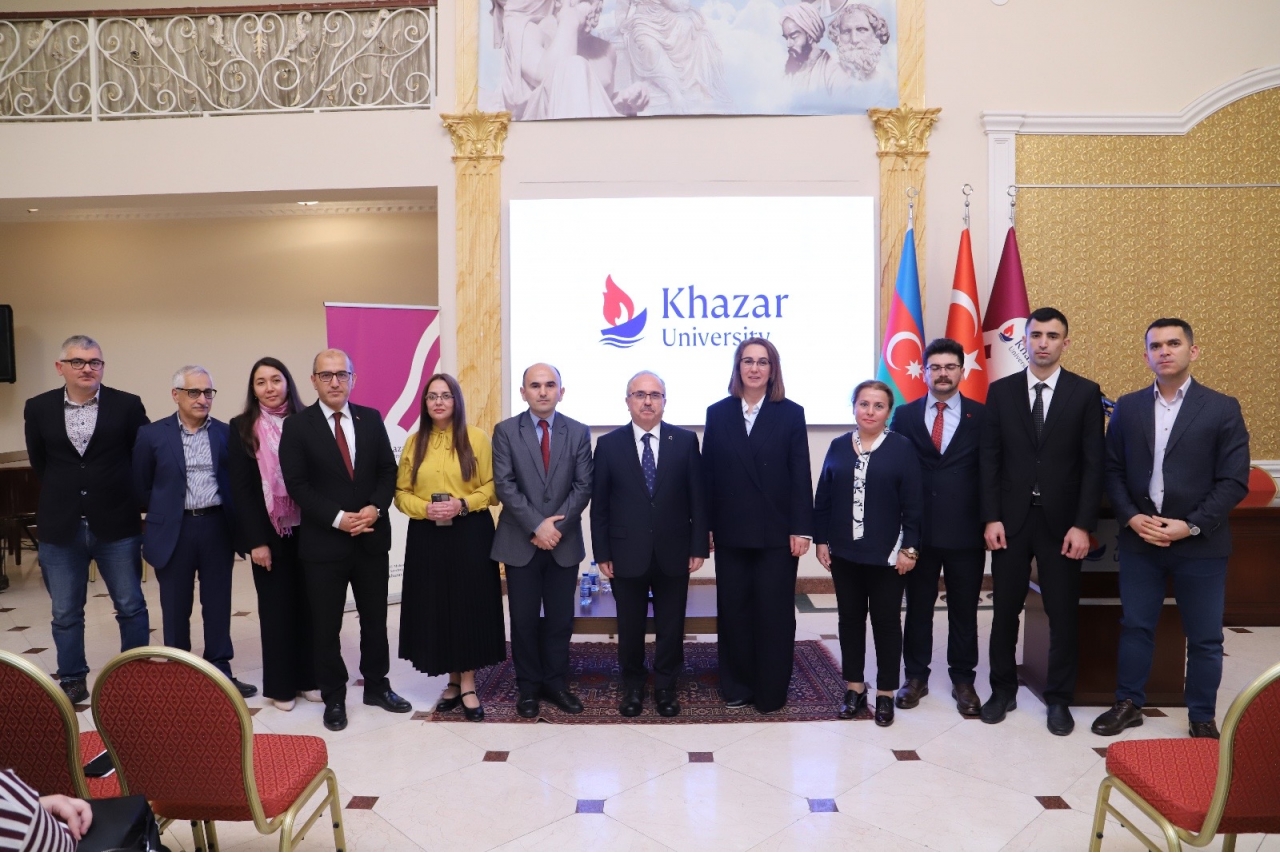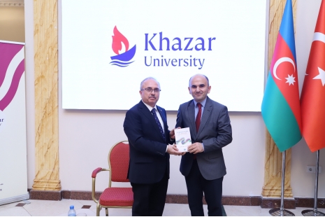At the end of the event, the rector of Khazar University Dr. Raziya Isayeva presented a commemorative gift to Prof. Birol Akgün from the university. The seminar ended with the guests taking a joint commemorative photo.