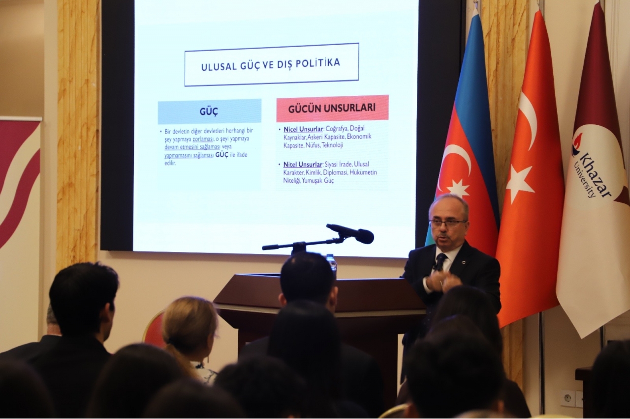 On December 2, 2025, the next academic seminar was held within the framework of the Khazar Talks-2 project, organized by the Department of Political Science and Philosophy of Khazar University. At this seminar, the Extraordinary and Plenipotentiary Ambassador of the Republic of Türkiye to Azerbaijan, Prof. Birol Akgün, presented a lecture on the topic of “Transformation of the Global Order and Türkiye”. The event took place in the Marble Hall of Khazar University, moderated by Dr. Oder Alizade, and was watched with interest by the university administration, academic staff, and students.