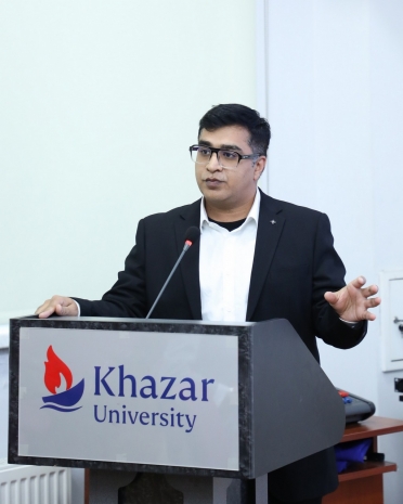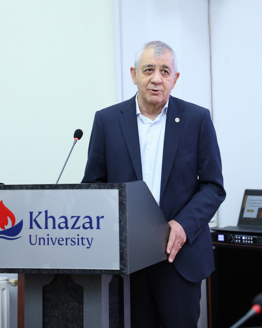 Dr. Milana Abbasova welcomed the guests and opened the session. She then invited Professor Hamlet Isakhanli, the founder of Khazar University and Chairman of its Board of Directors and Trustees, to deliver his remarks. In his speech, Professor Hamlet Isakhanli highlighted the growing importance of connecting linguistic research with rapidly evolving language technologies.