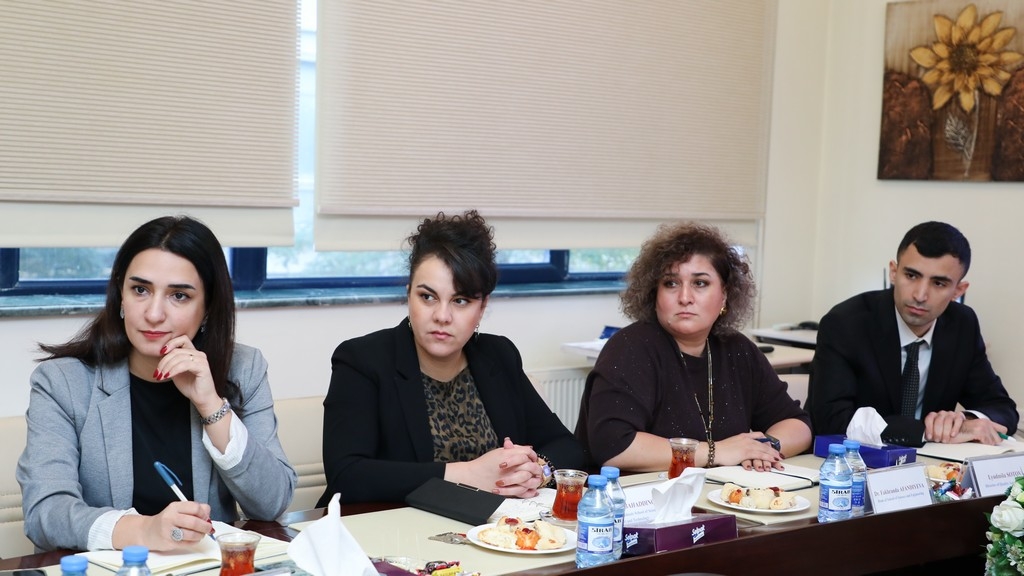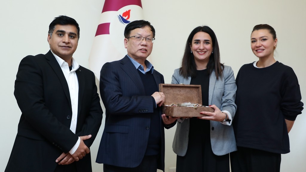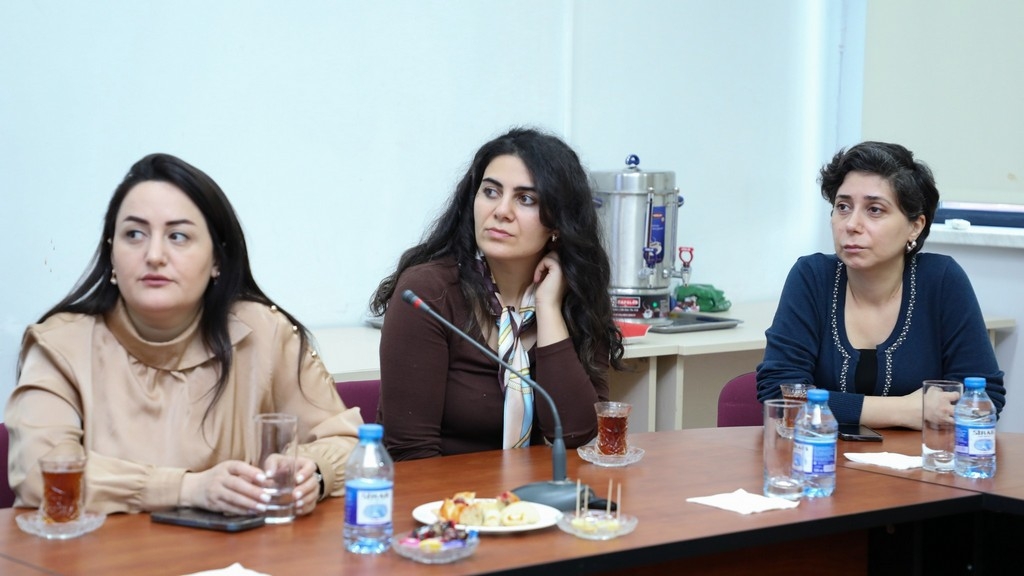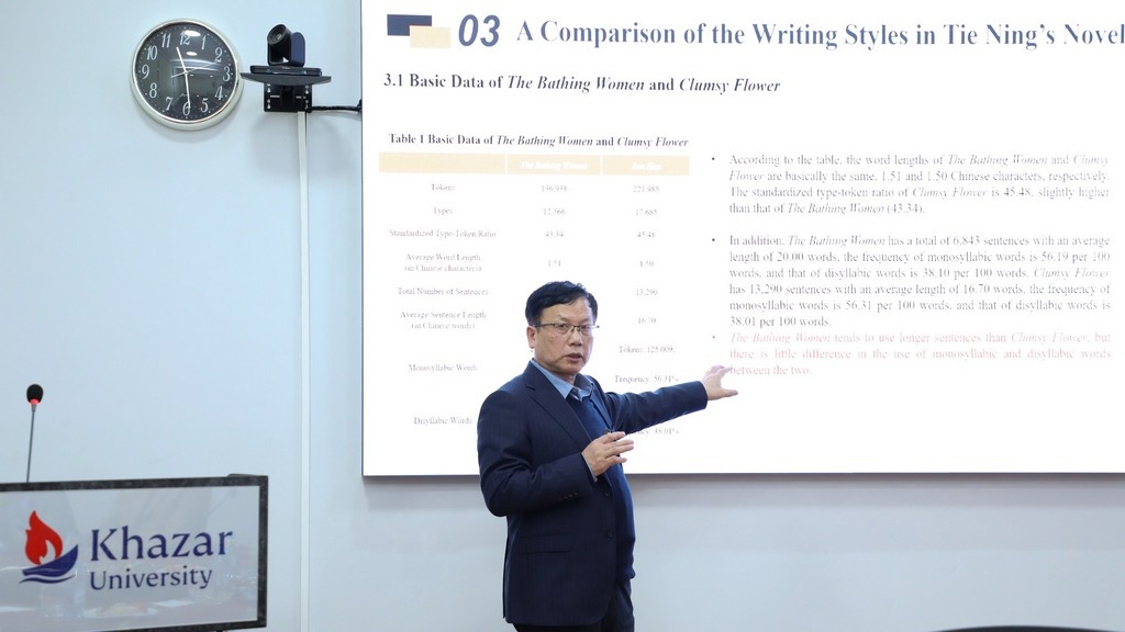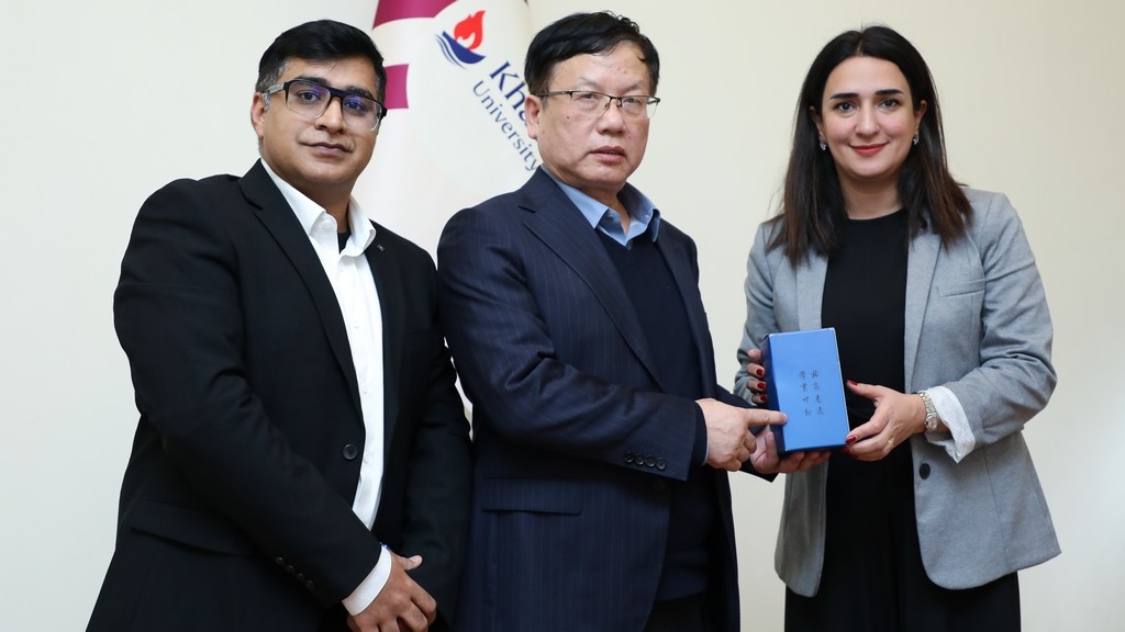 The Department of English Language and Literature recently welcomed two prominent scholars from the Institute of Language Sciences at Shanghai International Studies University for a special academic seminar. Before the event began, the guests met with Dr. Milana Abbasova, Dean of the School of Humanities, Education, and Social Sciences to discuss ongoing academic cooperation and explore new areas for collaboration.