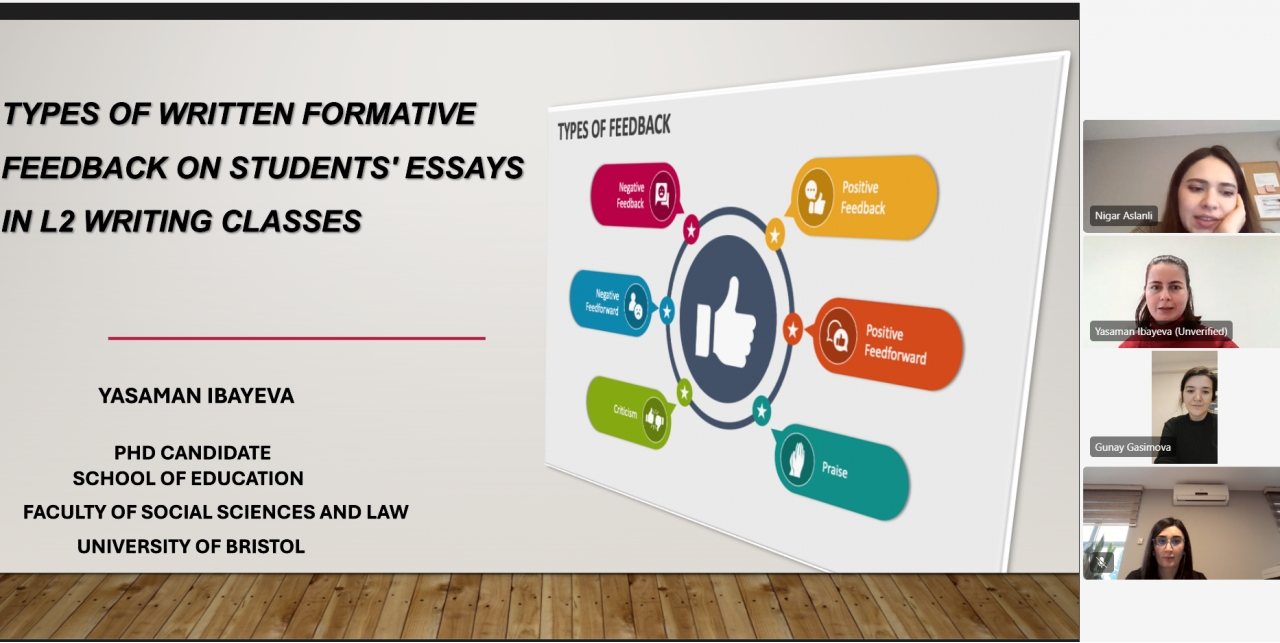 On December 15, 2025, a seminar on "Types of Written Formative Feedback on Students' Essay Work in Second Language (L2) Writing Classes" was held under the organization of Khazar University's School of Science and Engineering and the Department of Education.