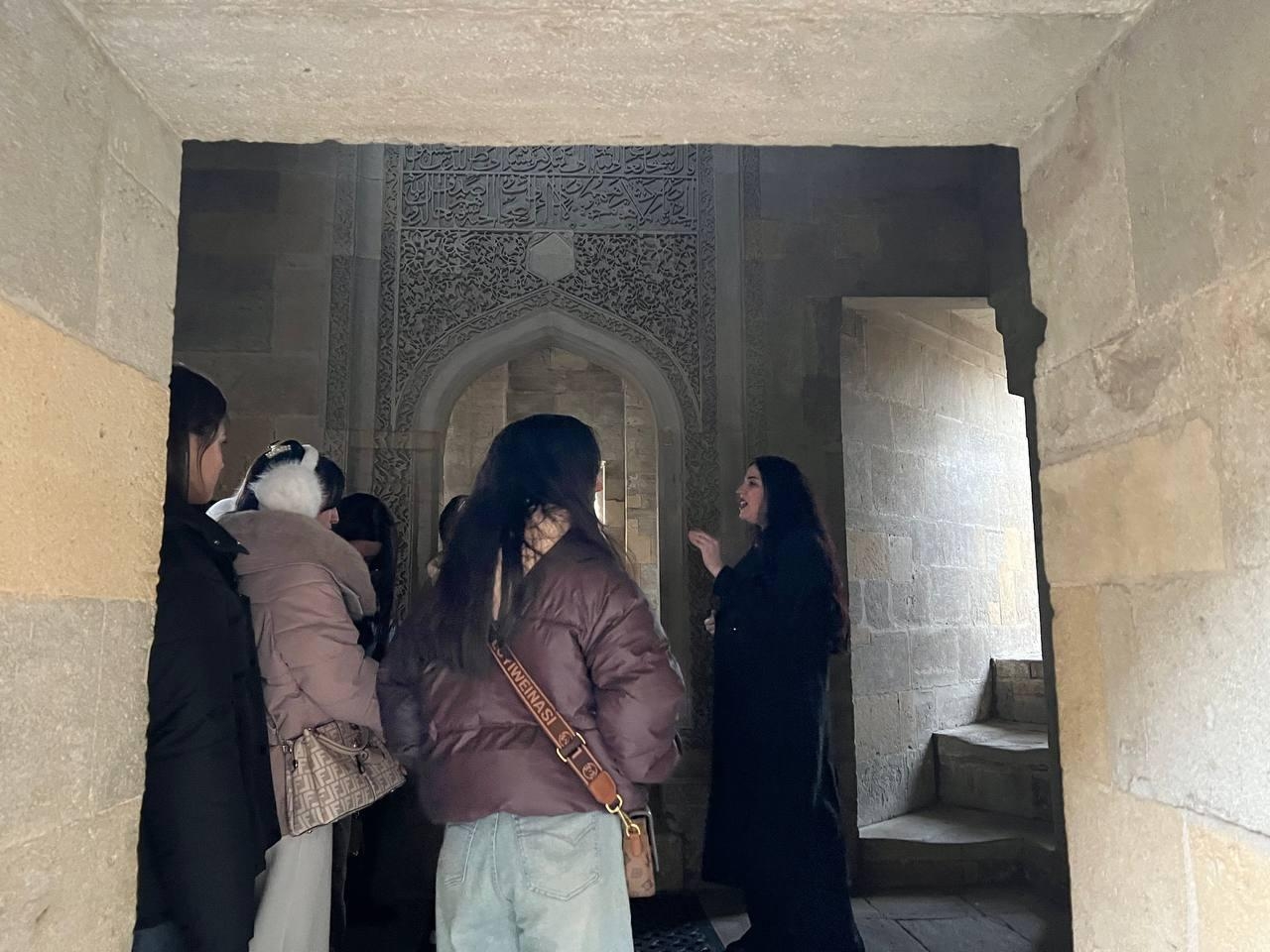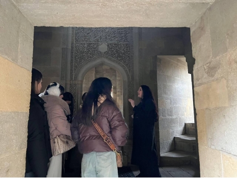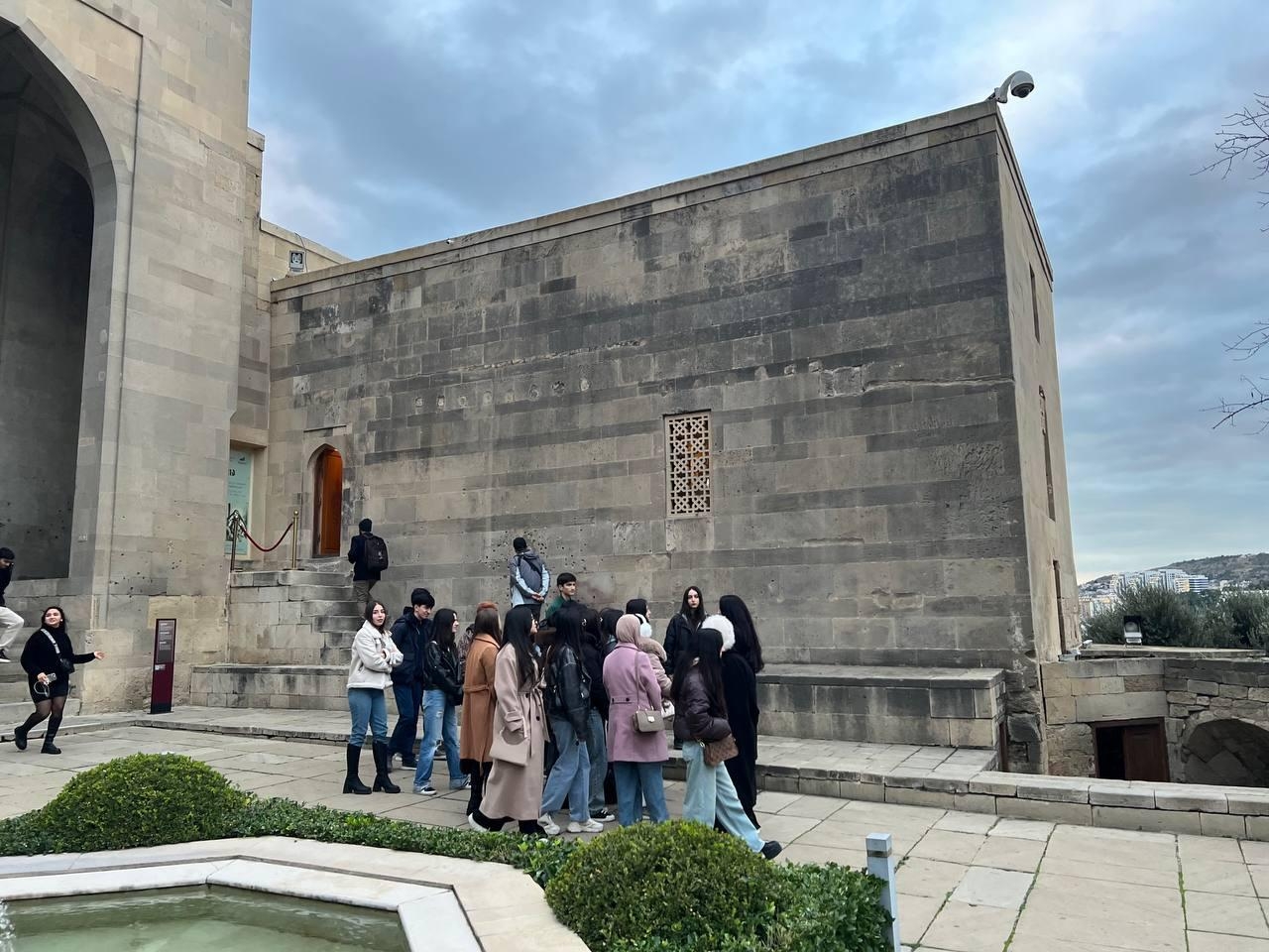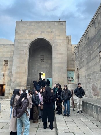 As a continuation of the educational program, students also took an excursion to the Shirvanshahs Palace Complex. A special guide assigned for the students provided extensive information about the architectural features of the palace ensemble, the complex's defense system, and the city during the Shirvanshahs period. The architectural elements of the palace ensemble dating to the late Middle Ages, their functions, and historical significance were explained to students visually.