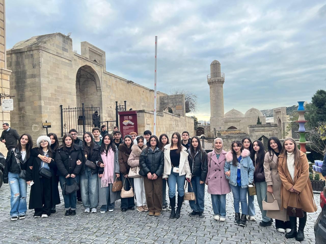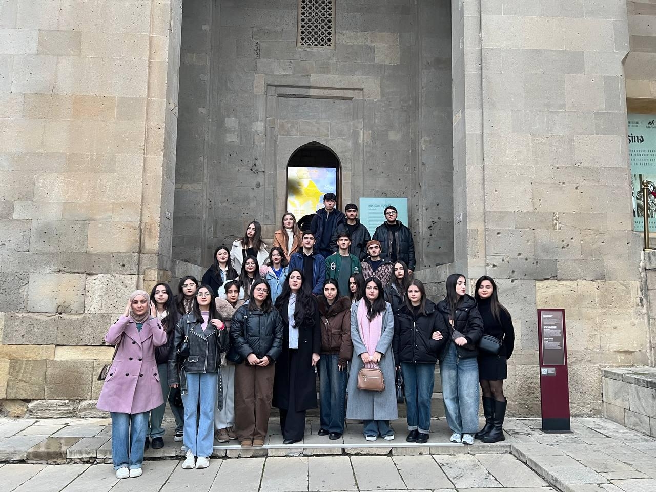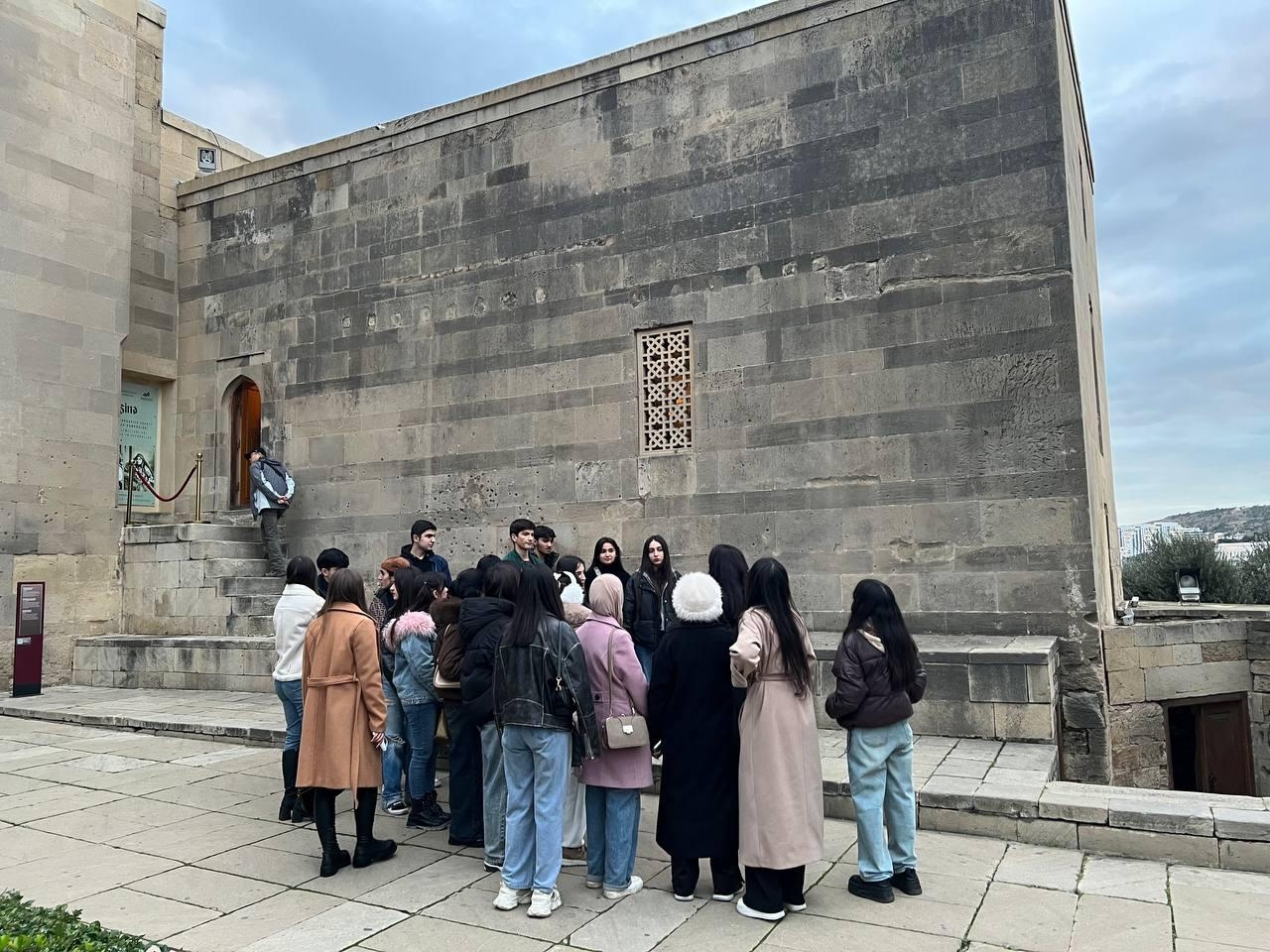 As a continuation of the educational program, students also took an excursion to the Shirvanshahs Palace Complex. A special guide assigned for the students provided extensive information about the architectural features of the palace ensemble, the complex's defense system, and the city during the Shirvanshahs period. The architectural elements of the palace ensemble dating to the late Middle Ages, their functions, and historical significance were explained to students visually.