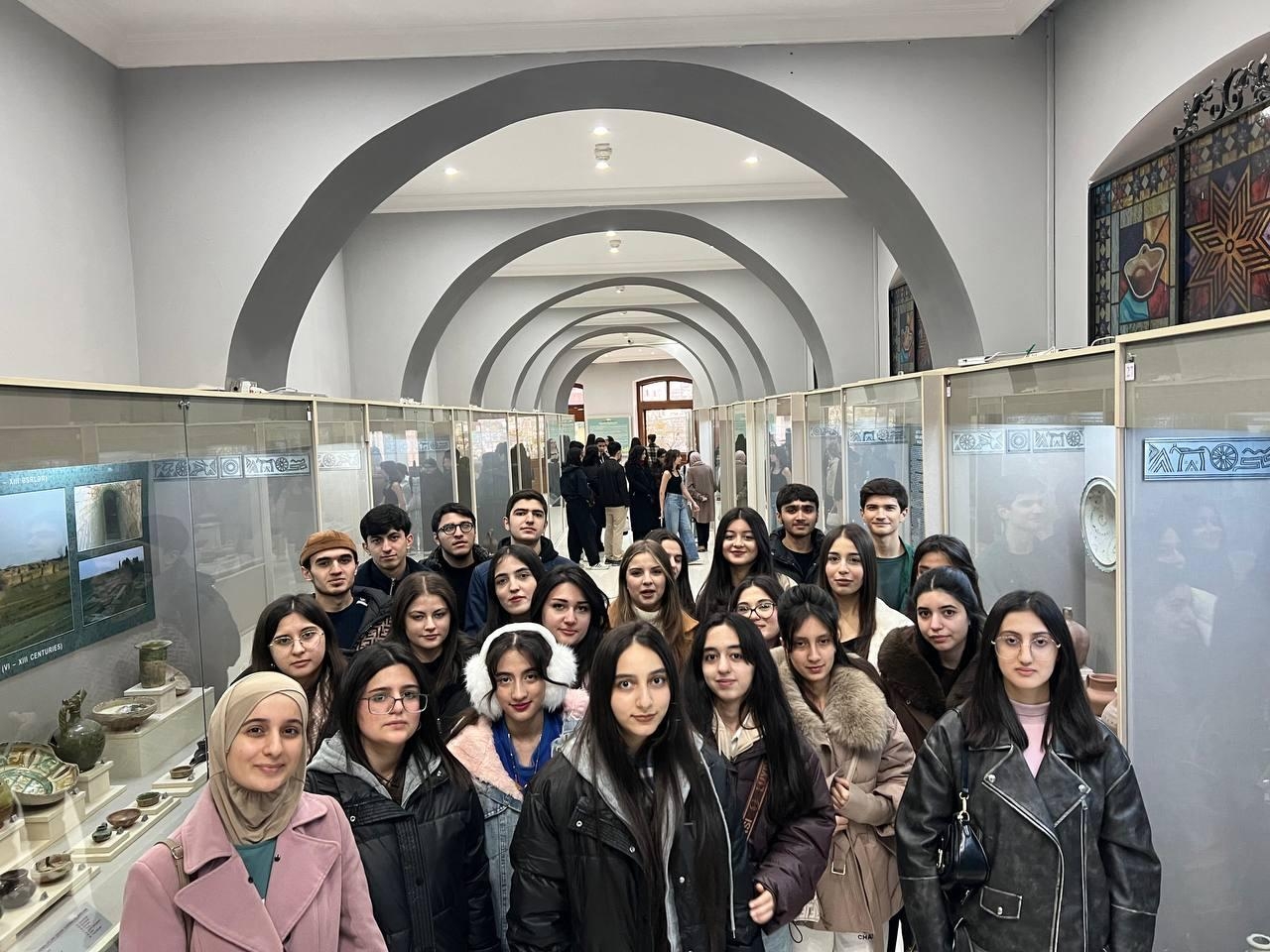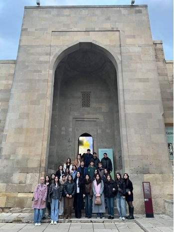 First-year students of the History-Geography Teaching program at Khazar University's School of Humanities, Education and Social Sciences conducted an educational visit on December 17, 2025, to the Museum-Exhibition Hall of the Institute of Archaeology and Anthropology of ANAS, as well as to the Shirvanshahs Palace Complex in the Icharishahar, within the "Fundamentals of Archaeology and Ethnography" course.