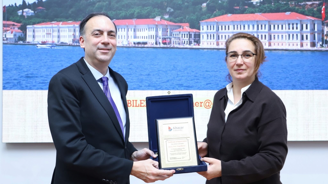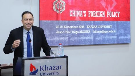 On December 22–24, 2025, an academic seminar was held within the framework of the Khazar Talks-3 project, organized by the Department of Political Science and Philosophy of Khazar University. As part of the seminar series, Assoc. Prof. Tolga Bilener, Director of the Strategic Research Center at Galatasaray University (Türkiye), delivered a series of lectures on the topic “Chinese Foreign Policy: Concepts, Actors, and Regional Dynamics.” The event attracted great interest from the university administration, faculty members, and students.