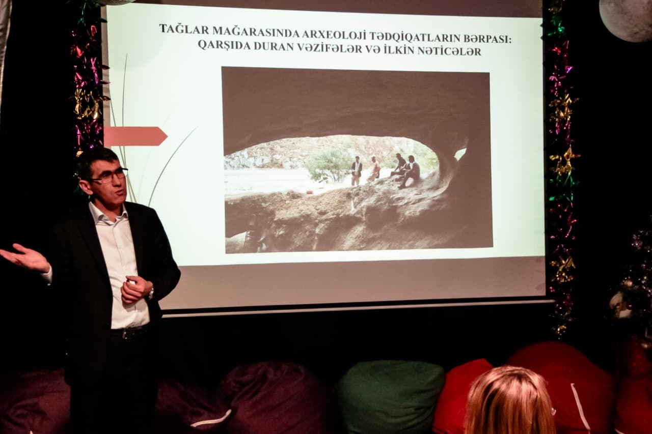During the event, the researcher provided extensive information about the geographical distribution of Paleolithic monuments across the territory of Azerbaijan and the research results of local and international expeditions conducted between 1953 and 2025. Y. Mammadov devoted particular attention to the international archaeological research conducted at the Azikh and Taglar caves, in which he participated following the Patriotic War.
