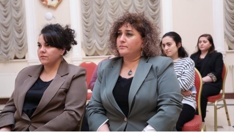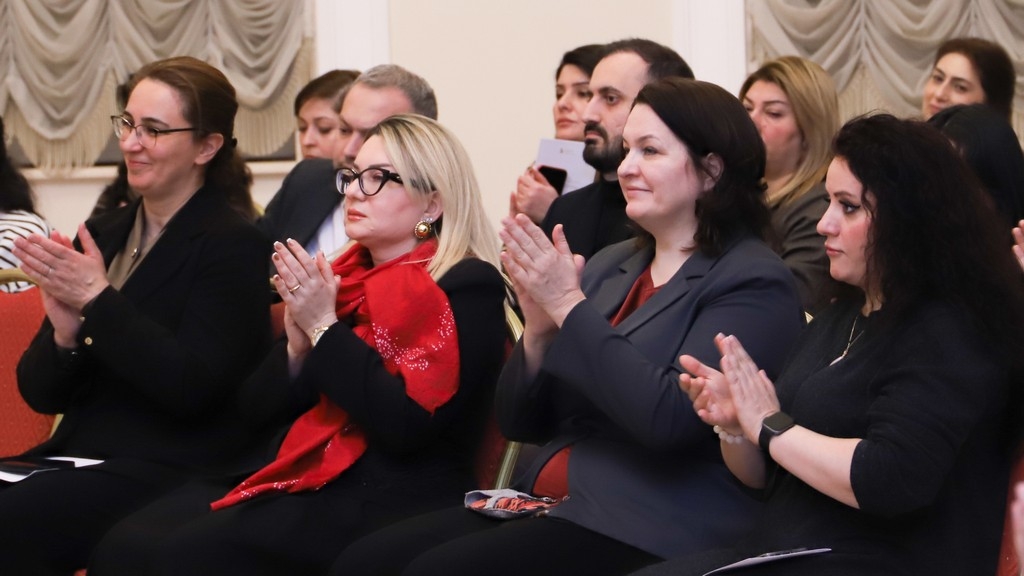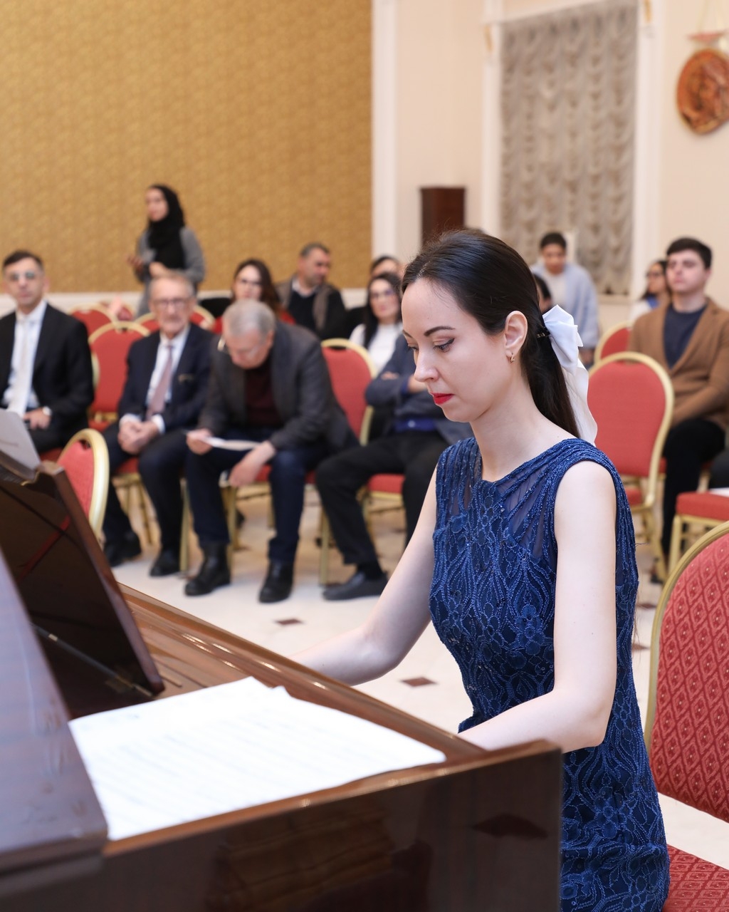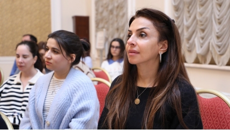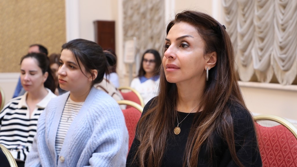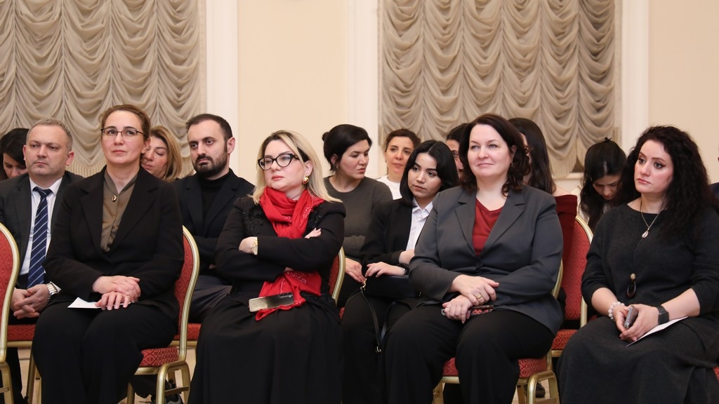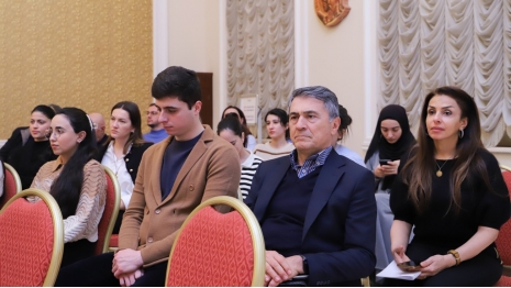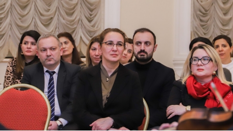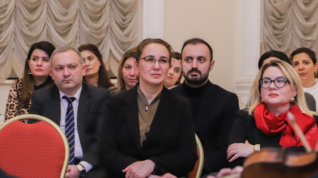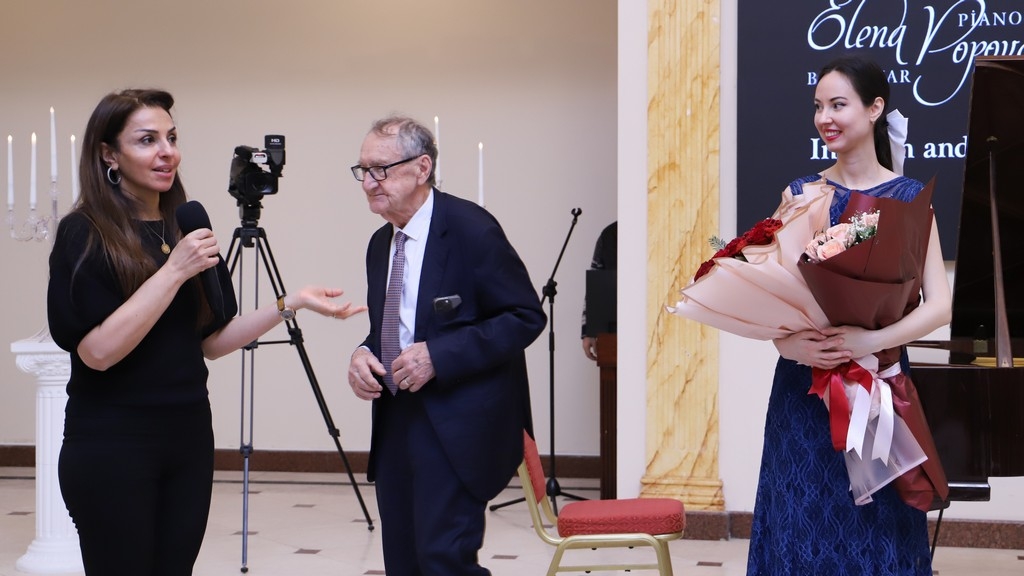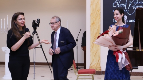 After the university rector, Dr. Raziya Isayeva, welcomed the participants, the renowned composer and pianist was introduced. It was noted that after graduating from music school in piano class, Yelena Popova continued her education at the Clarice Smith Performing Arts Center at the University of Maryland in 2023, subsequently completing a master's program.